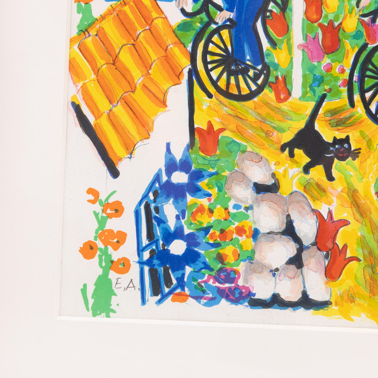 Color lithograph, EA, “The doll on the fishing mode”, dimensions with frame approx. 57 x 46 cm.