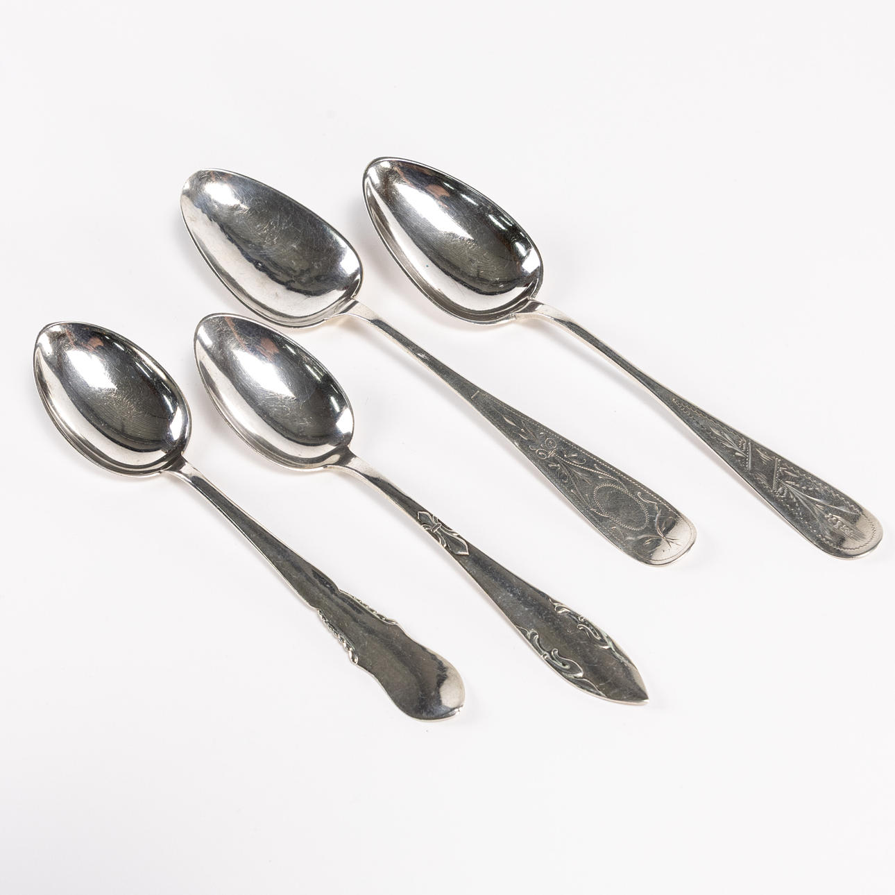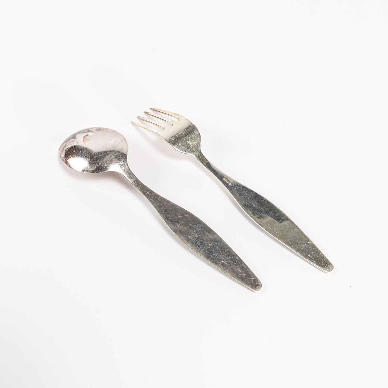 Spoons, cake shovel, egg cup, baptismal cutlery, length approx. 23 cm and less.