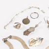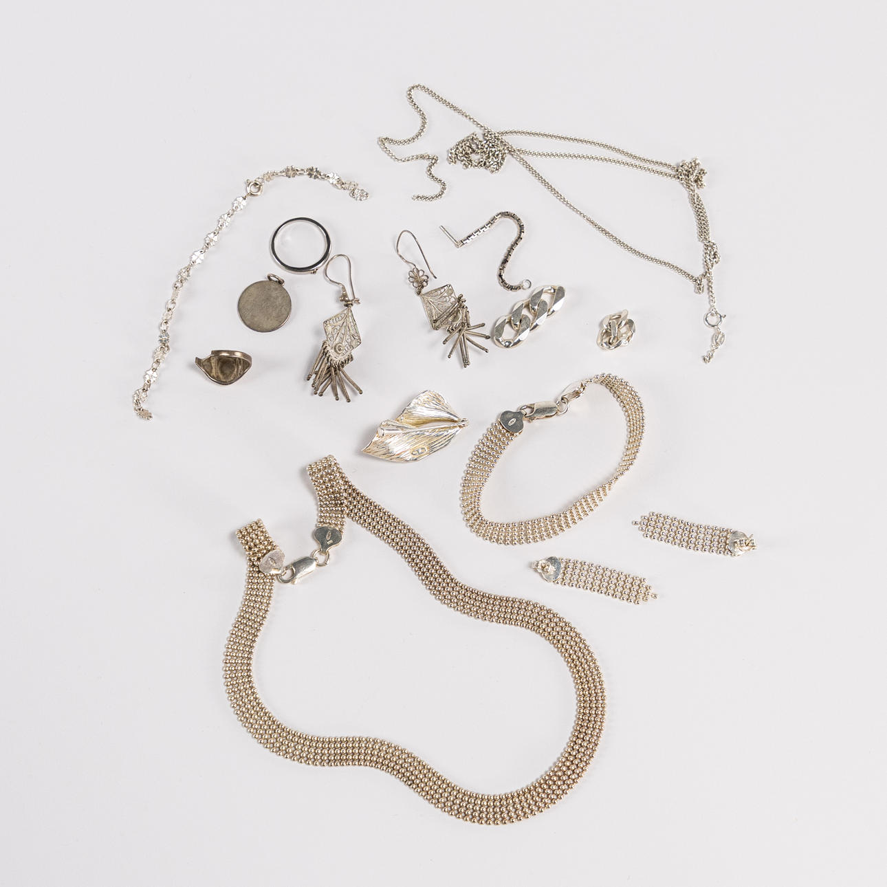 Fl. a. jewelry set of 3 pieces, brooch, ring, etc., weight 69,7 grams.
