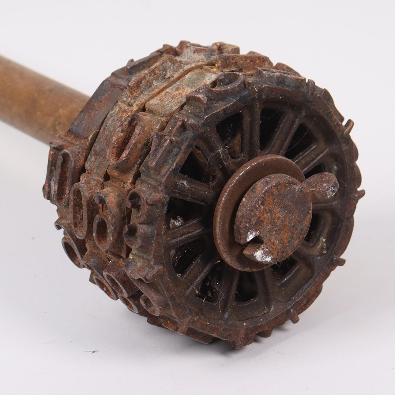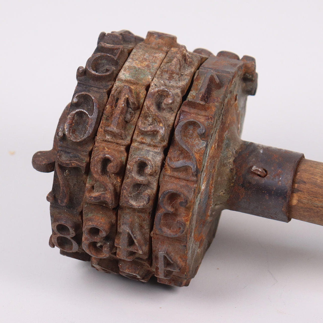After felling, the logs at the sawn edge were marked with a unique numerical code for the owner of the timber. The lumberjack twisted the digit rings, pressed the combination onto an ink pad, and then hit the cut surface of the log with the tool. Depending on the region, this tool is known by the following names: number hammer, number hammer, numbering club, number hammer, board hammer, forester artoquotte.