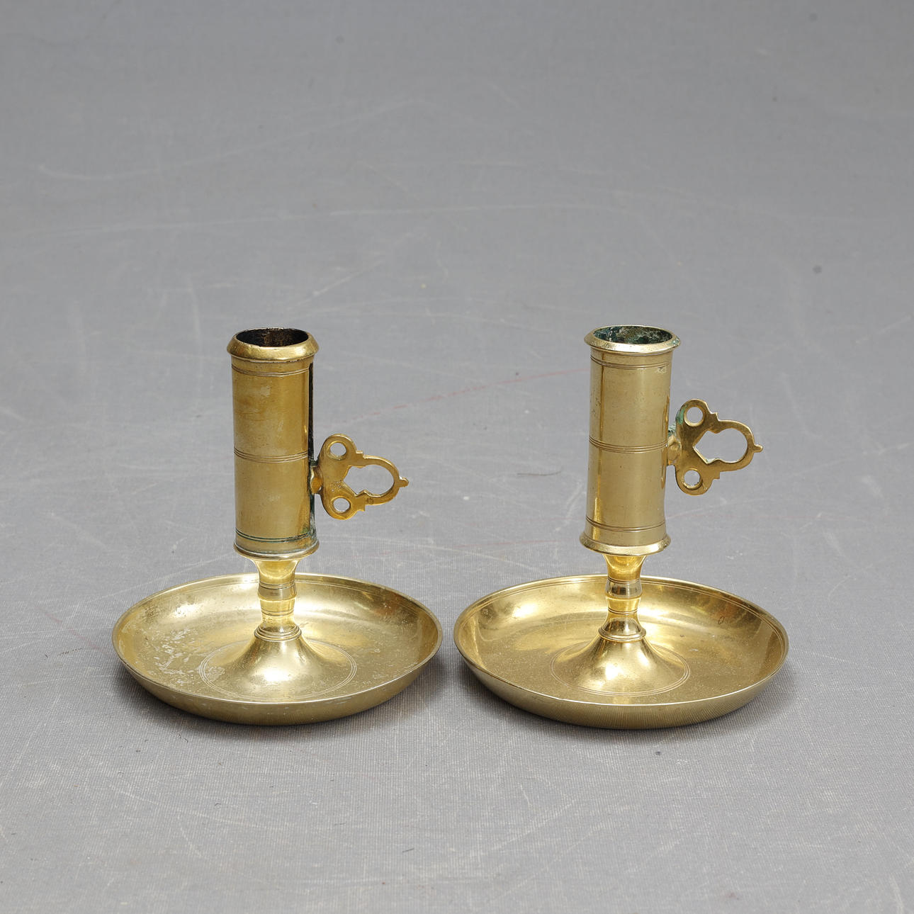 CANDLESTICKS, a pair, brass.