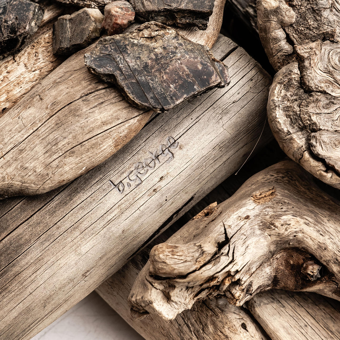OIDENTIFIERAD KONSTNÄR. Wall sculpture, Driftwood, Signed.