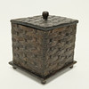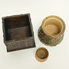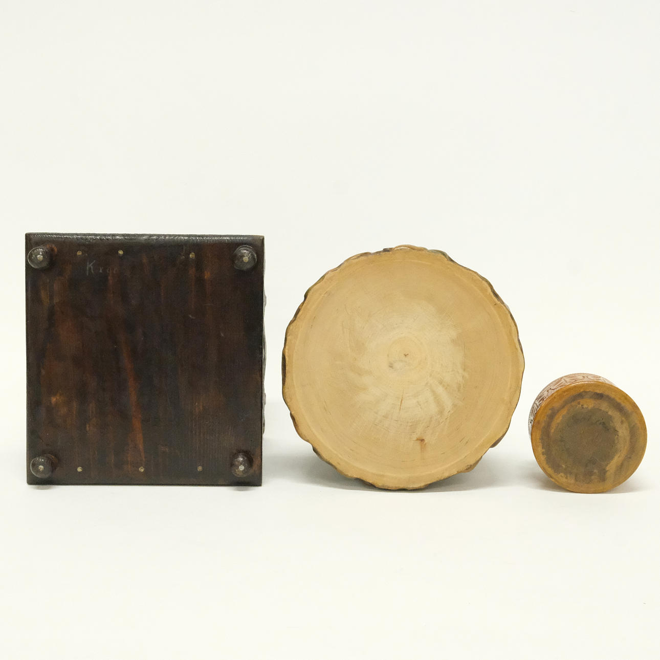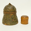 Two tobacco cans, wood, height 20 and 17cm, diameter 12 and 14cm.