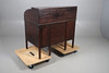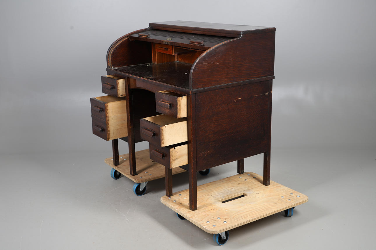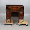 An early 20thc roll top desk with a tambour front and a fitted interior, with three drawers to each pedestal. 106cms across, 107.5cms high.
