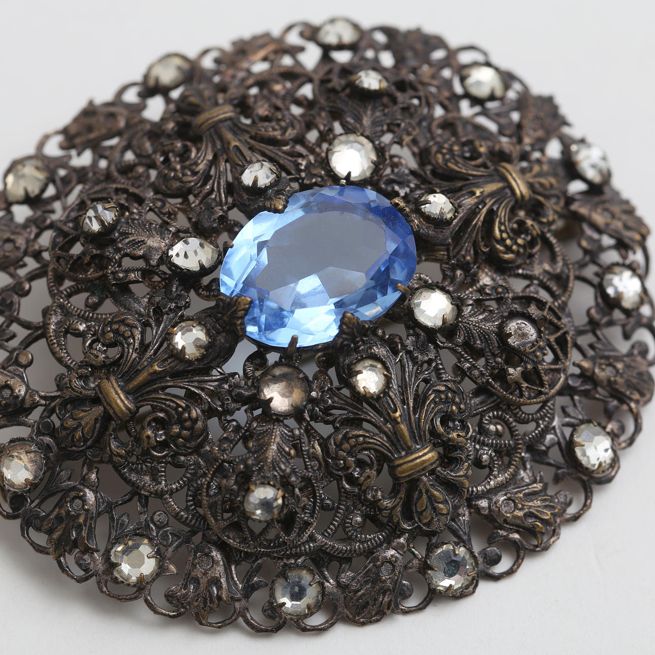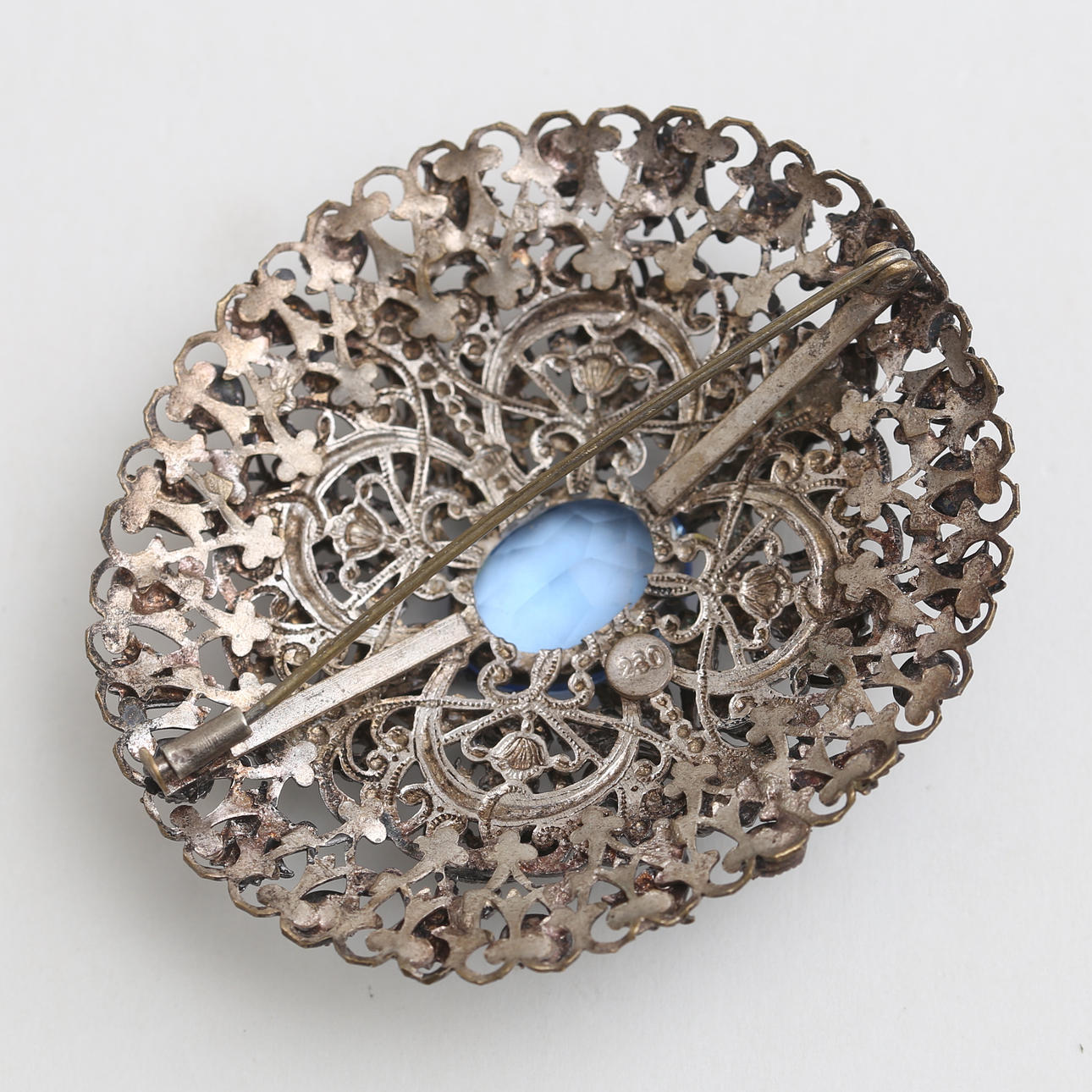 GOLD PLATED SILVER BROOCH with stones.