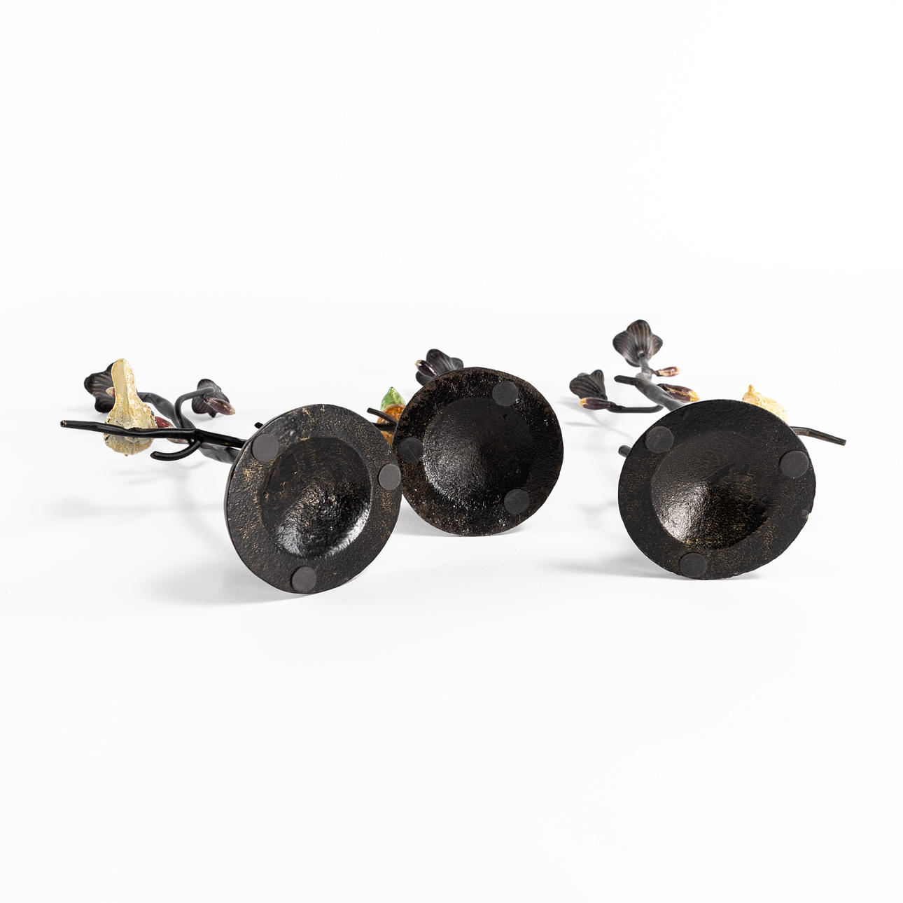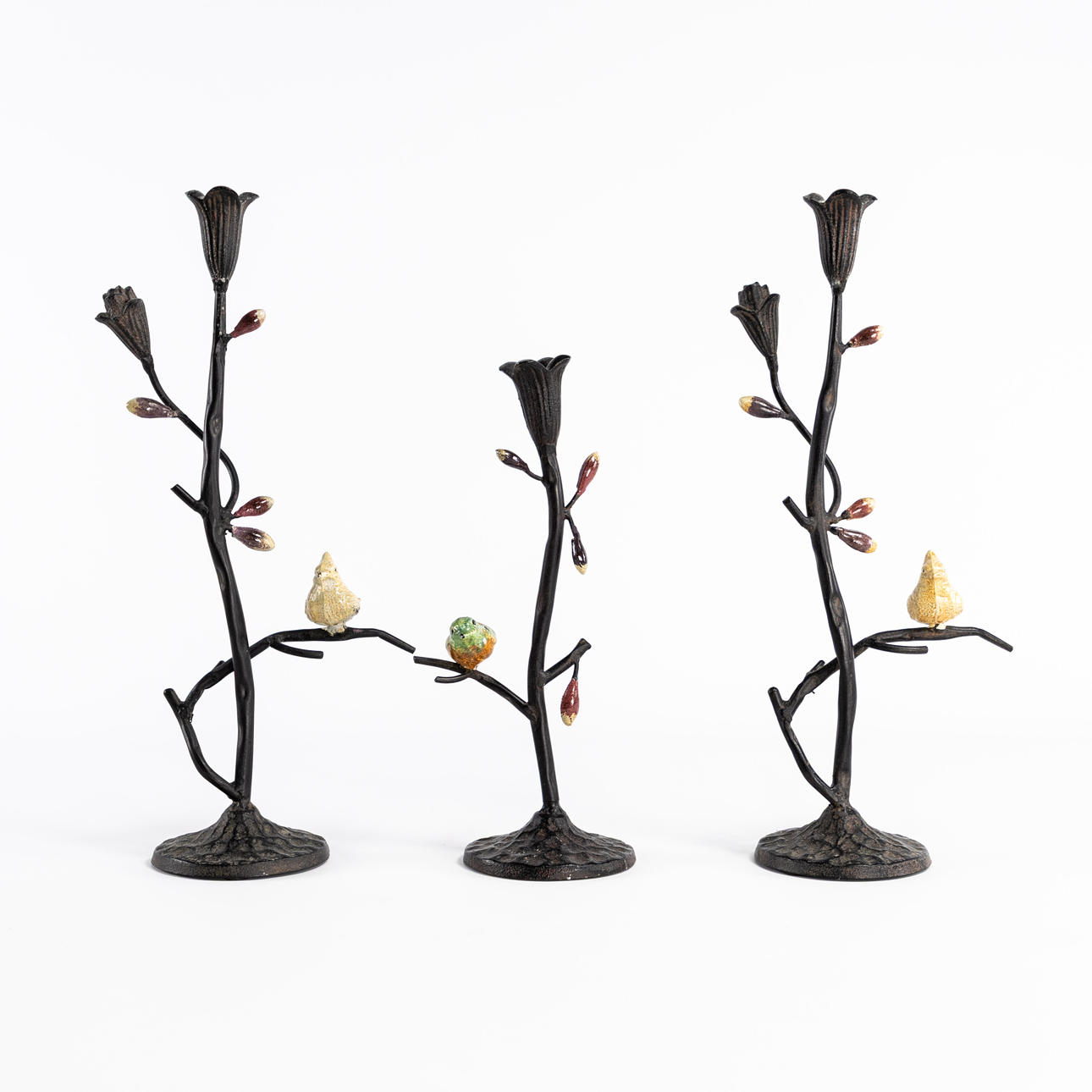 Candlesticks, 3 pcs, cast iron, bird decoration, maximum height 40 cm.
