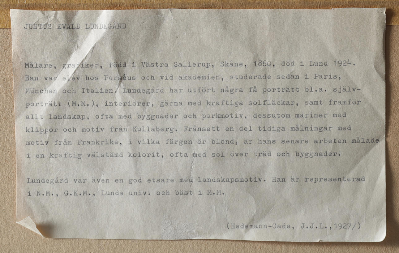 JUSTUS LUNDEGÅRD. Archipelago motif, etching, signed and dated 1912.