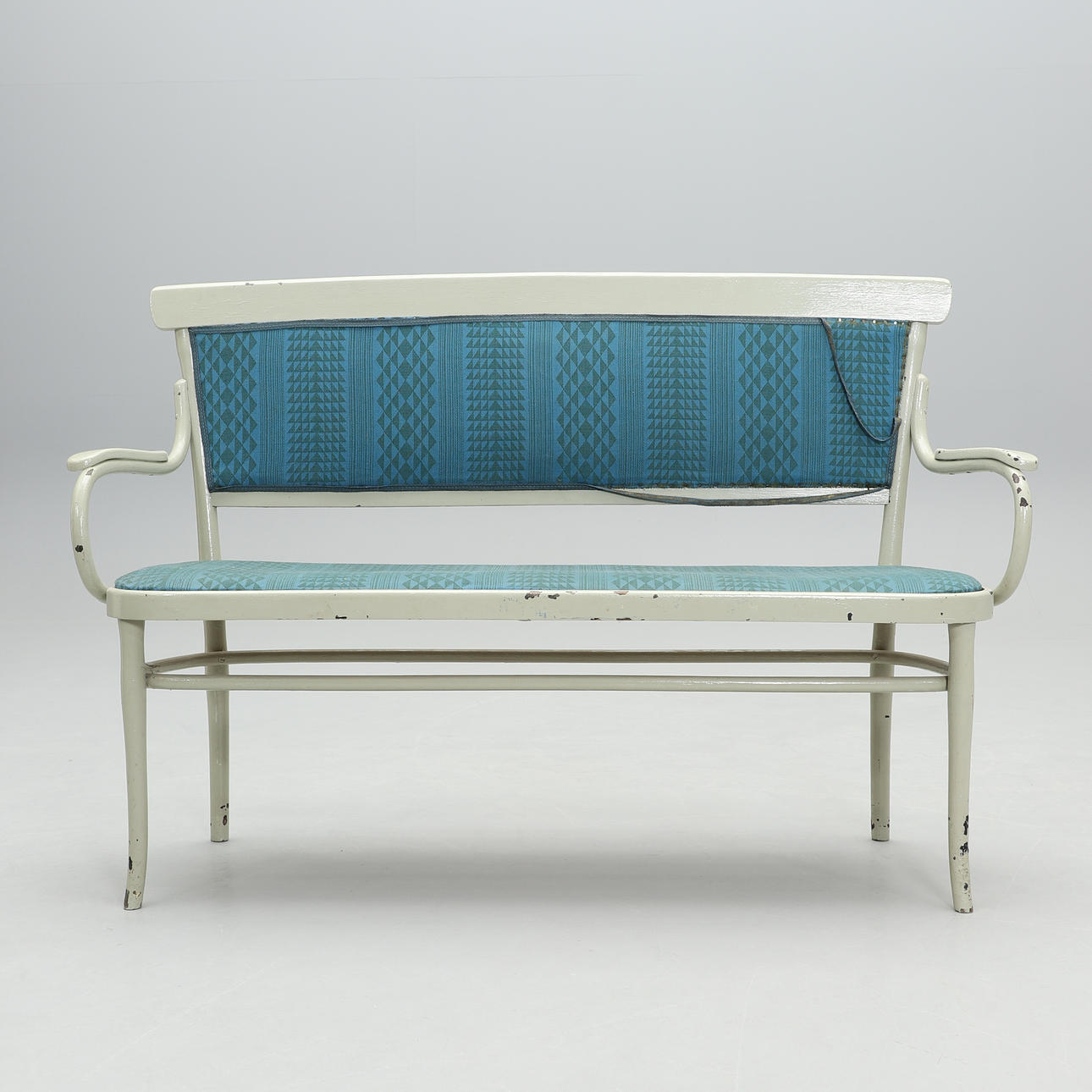 Frame made of bent wood. Upholstered back and seat. Length approx. 150 cm. Seat height approx. 48 cm. Back height 96 cm.