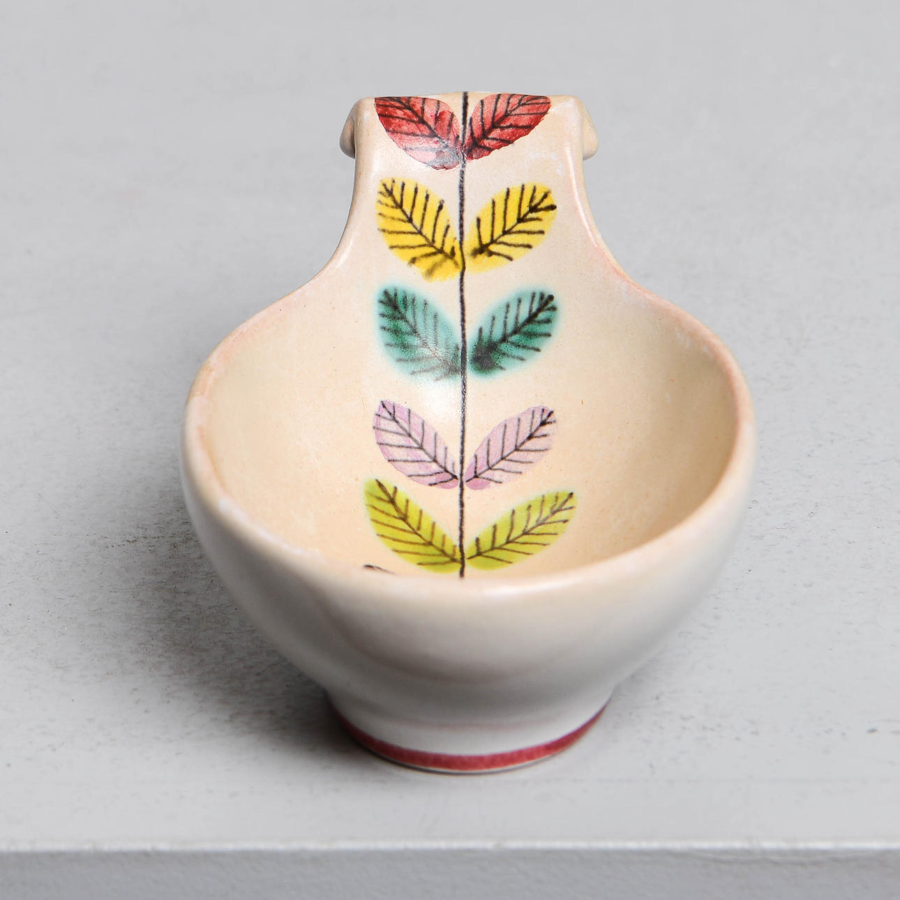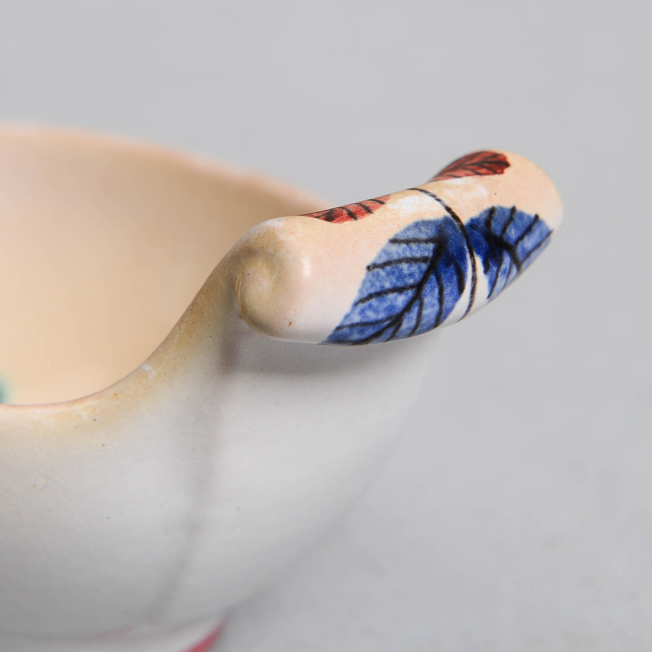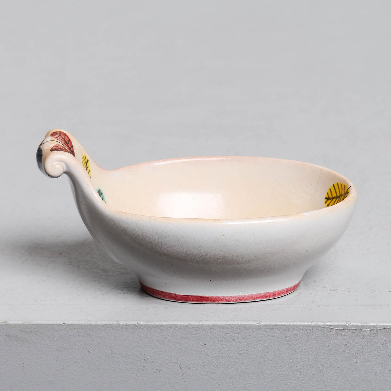 Normal wear and tear. Needle crack on the front edge of the bowl.