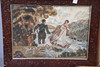 Largest, damp has got inside the frame and the material backing has been affected, colours have faded a little over time, frame marked and chipped in places