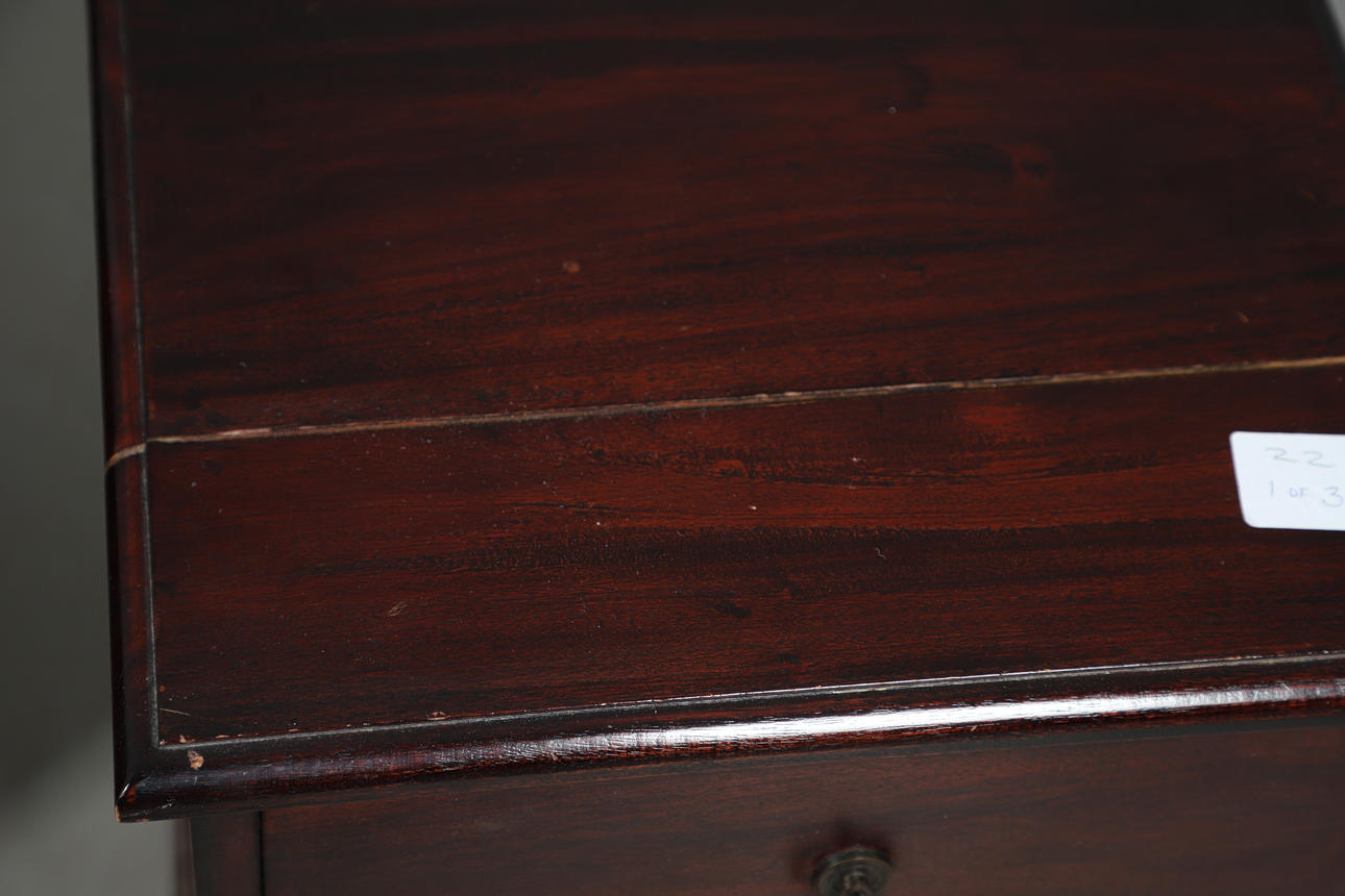 Wear commensurate with age and use including scuffs, nicks, scratches and a small split to bedside table. See online images.