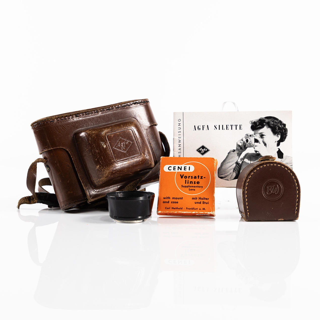 Agfa Silette, circa 1950s, Germany, comes in original carrying case and with various filters and backlight protection