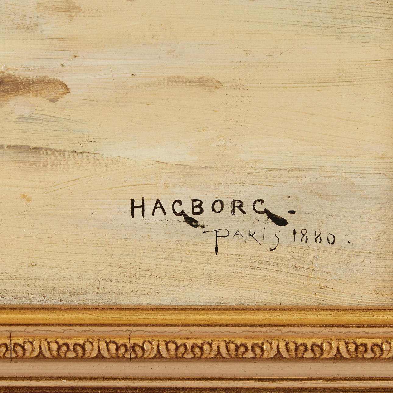 AUGUST HAGBORG. Mussel picker, oil on panel, signed, dated Paris 1880.