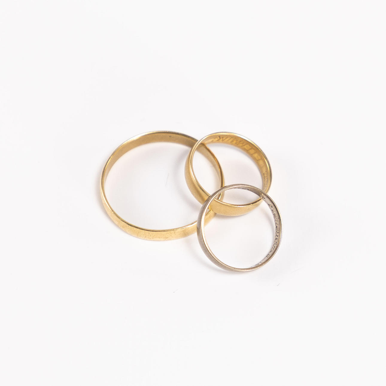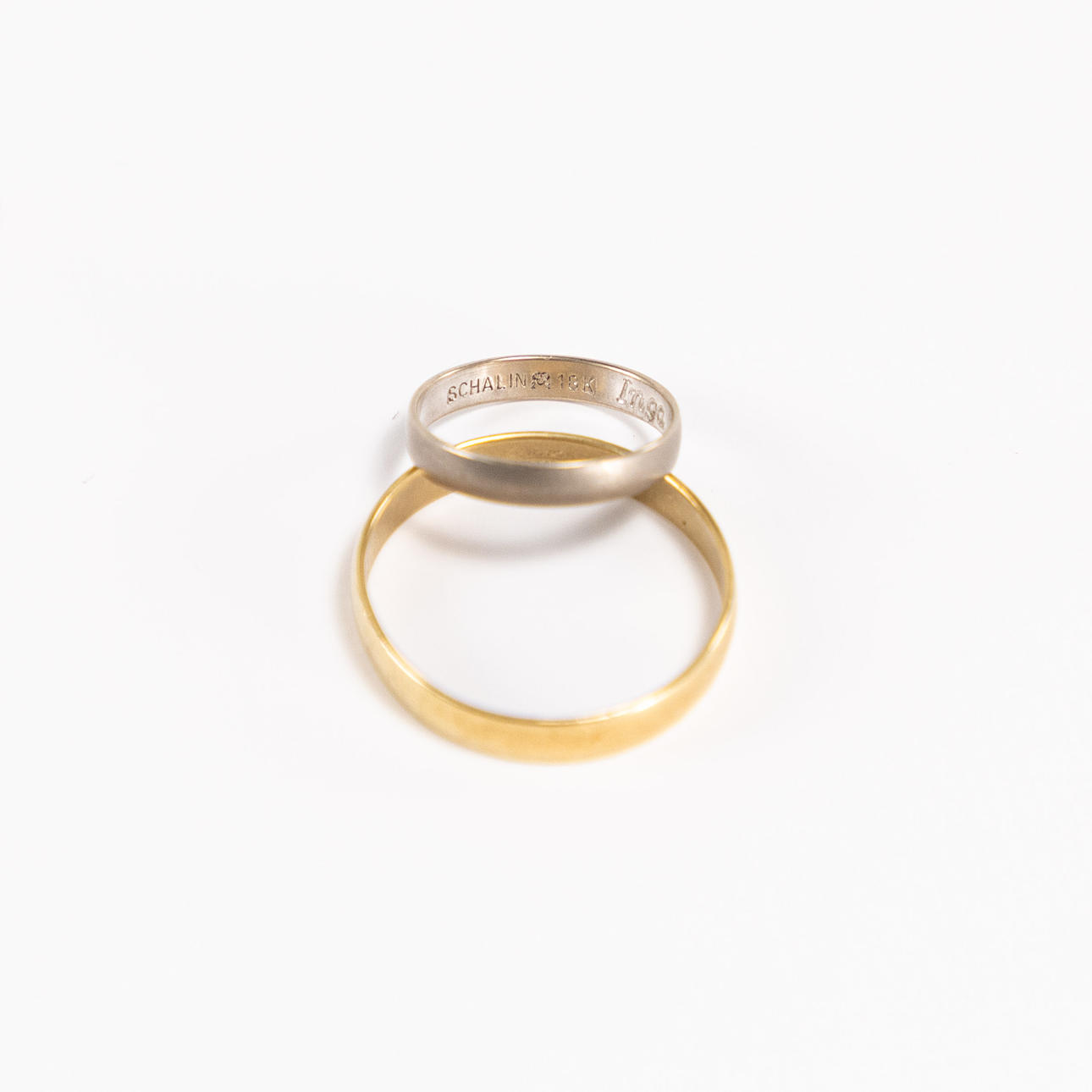 Smooth rings, 18k gold and white gold, internal engraving, total weight 7,2 grams.