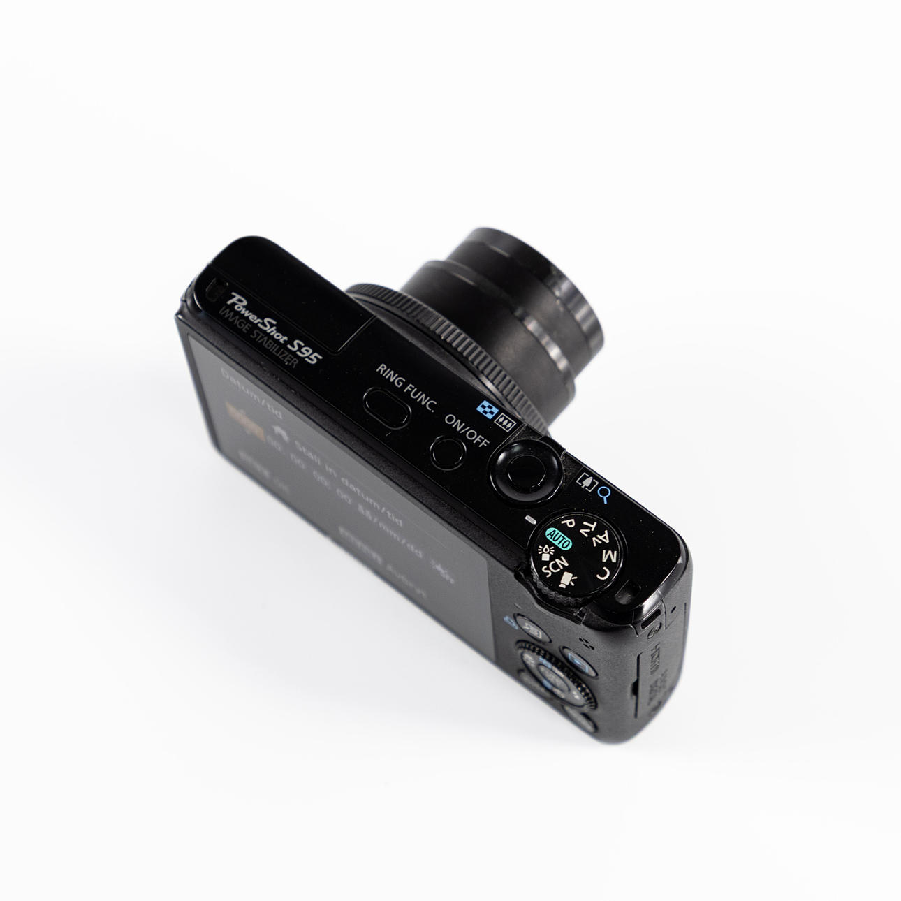 Digital camera, Canon Powershot S95, ca 2011, Japan, comes in box with instruction manual, charger, carrying case and extra battery