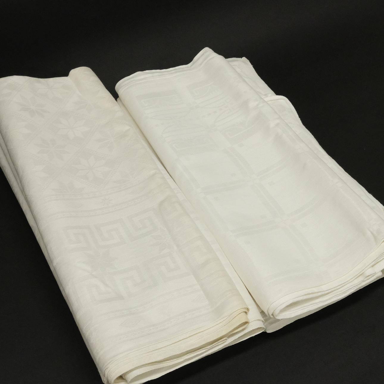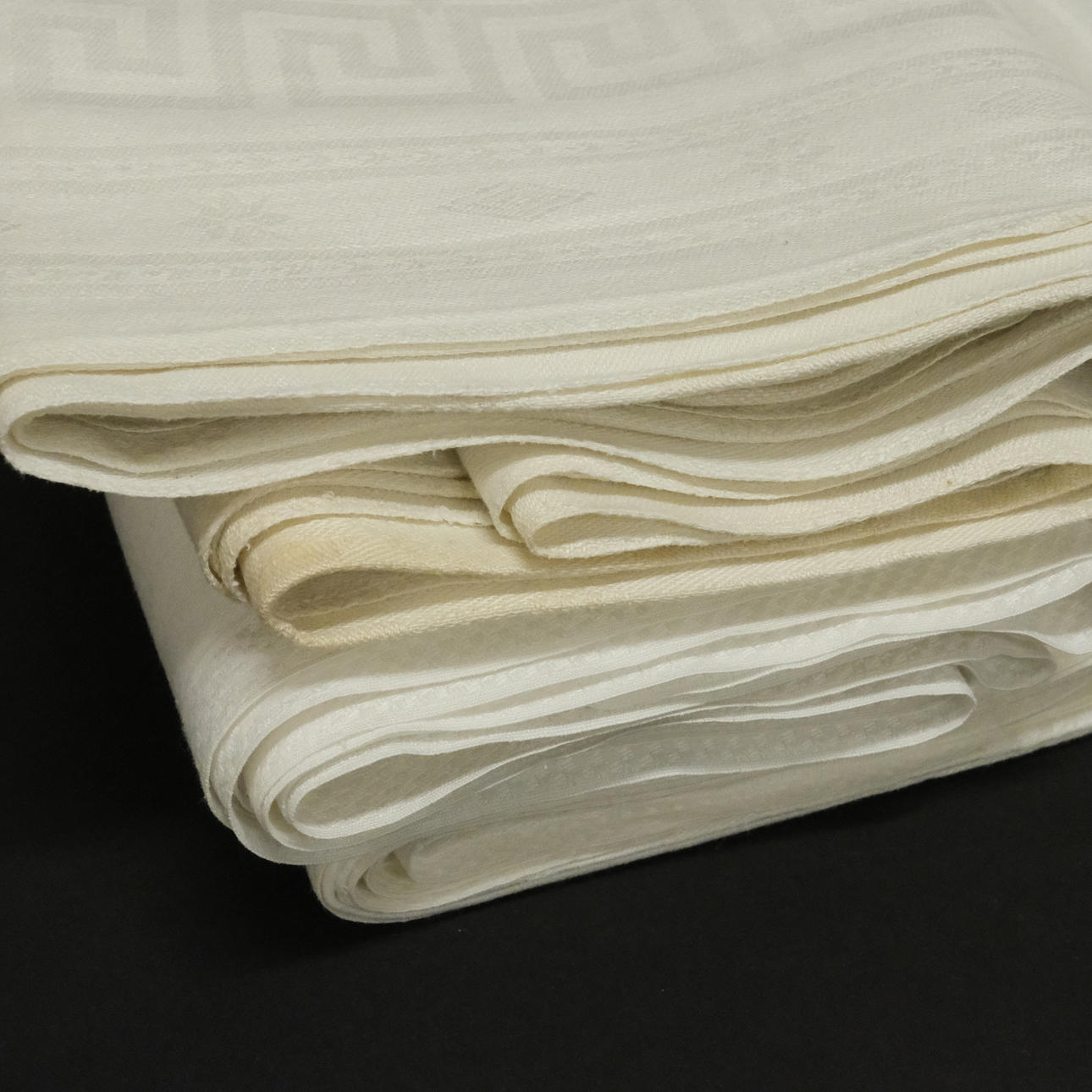 Normal wear and tear. Someone with monograms and yellowed.