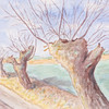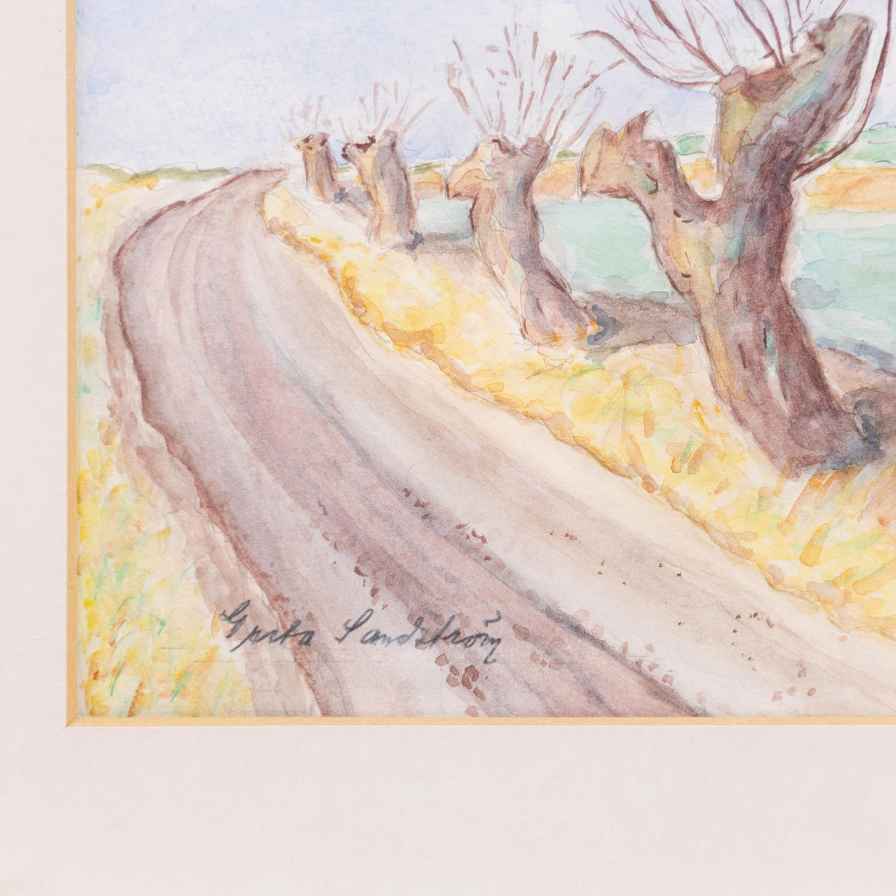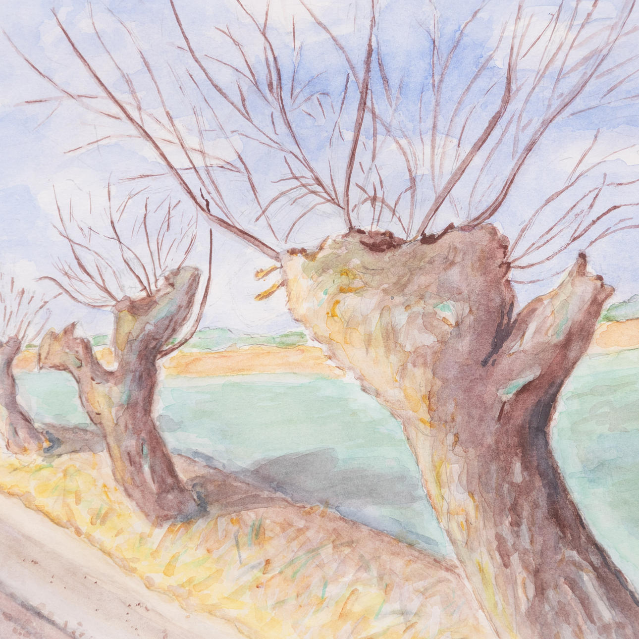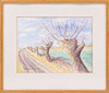 Watercolour, motif with willow wall, signed, dimensions with frame approx. 44 x 37 cm.
