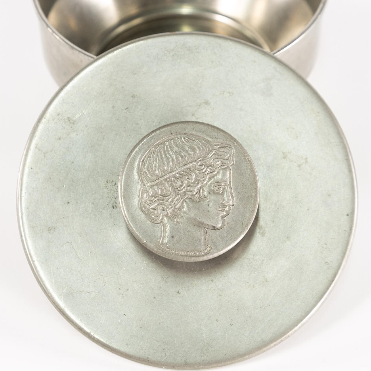 Oscar Antonsson, tin and wood lid jar, 1963 (K8) Athena Ystad, diameter approx. 13 cm.