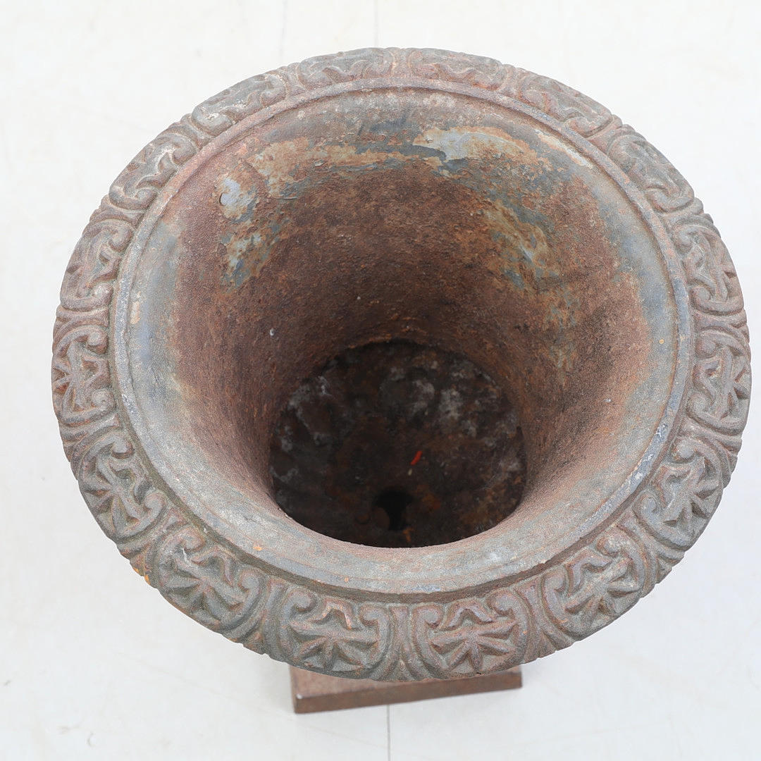 A cast iron urn.