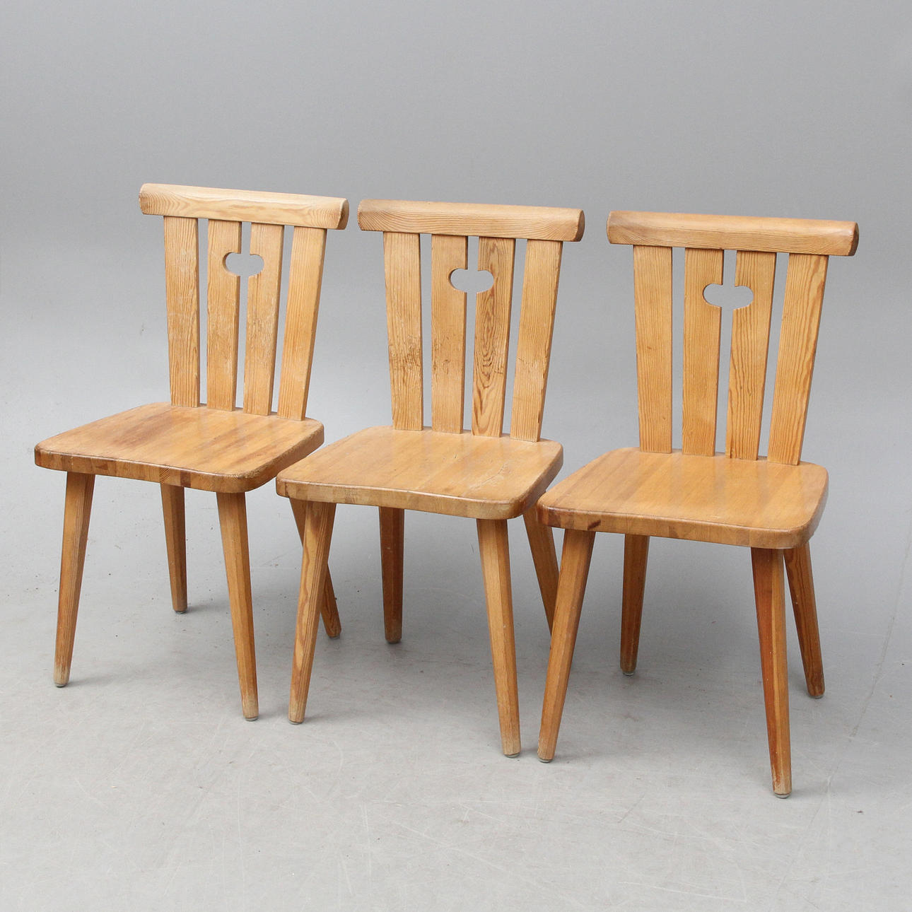 4996506. A set of 3 pine chairs.