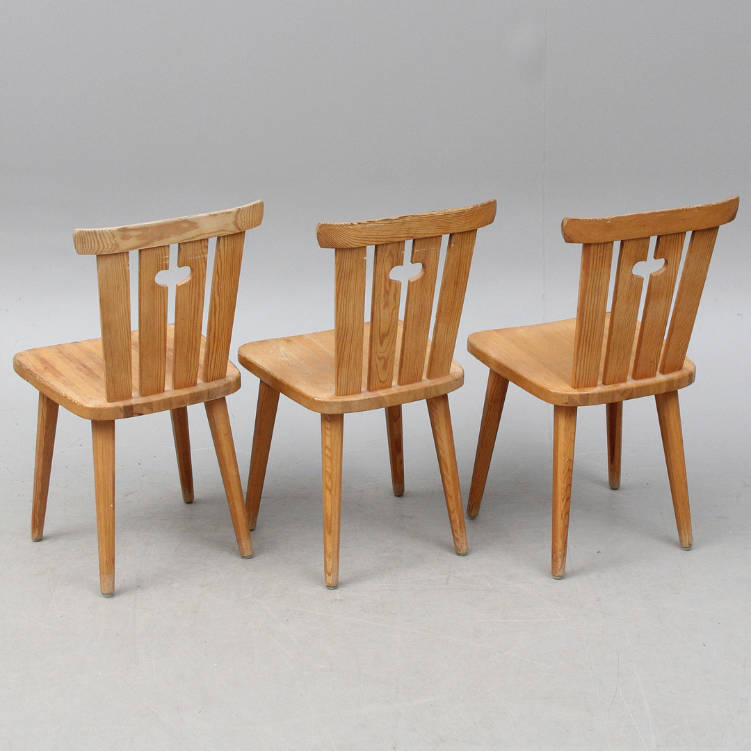 4996506. A set of 3 pine chairs.