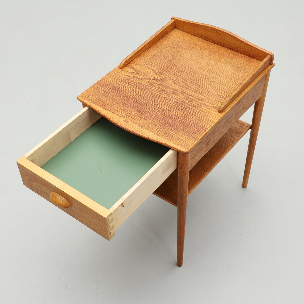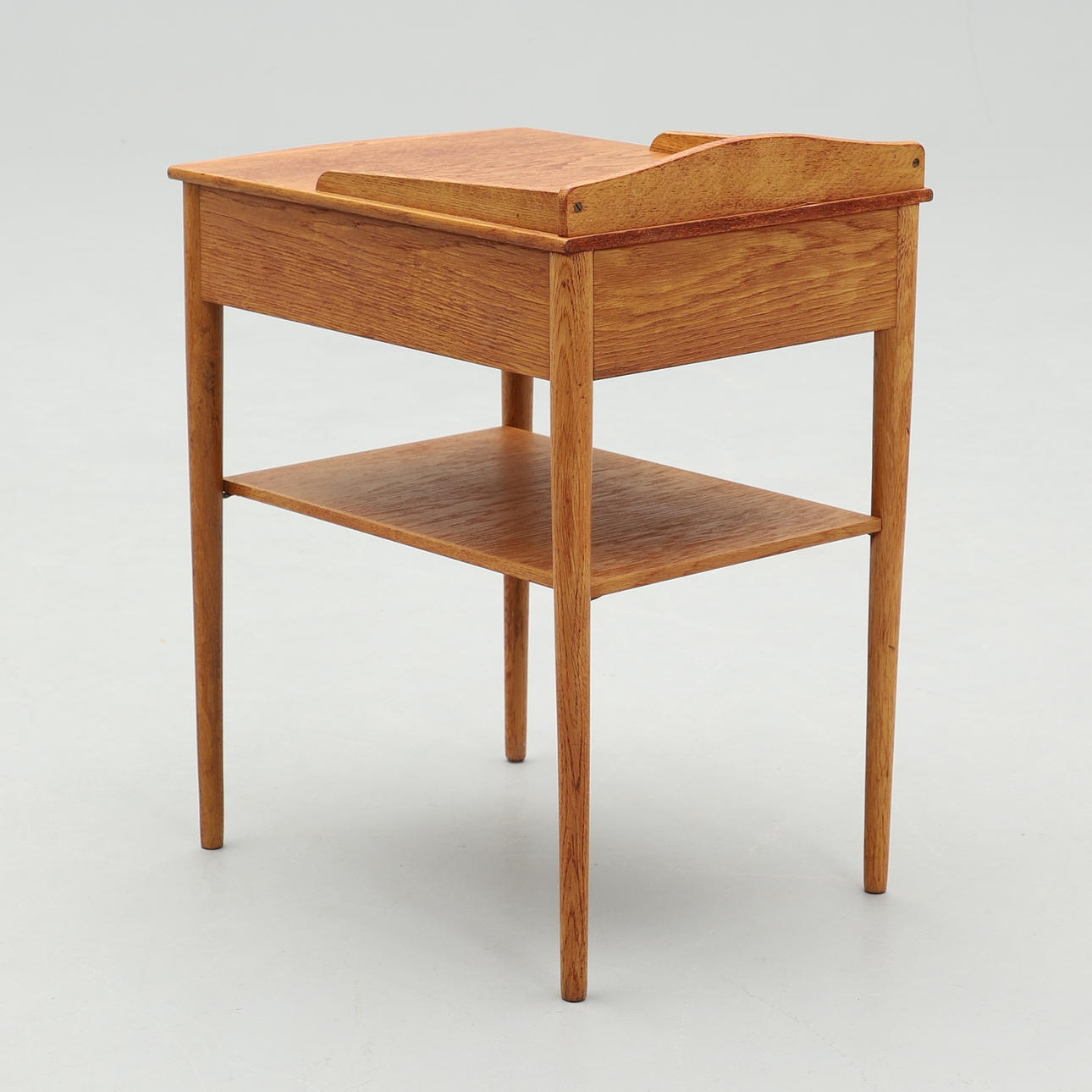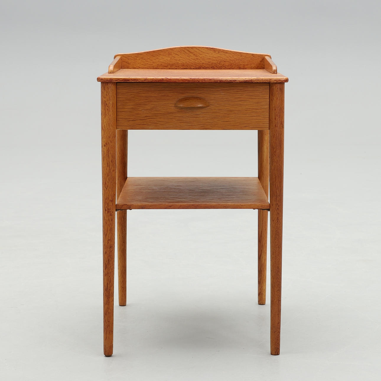 Veneered with oak. Pull-out box. With shelf. Width 34, depth 42, height approx. 54 cm.