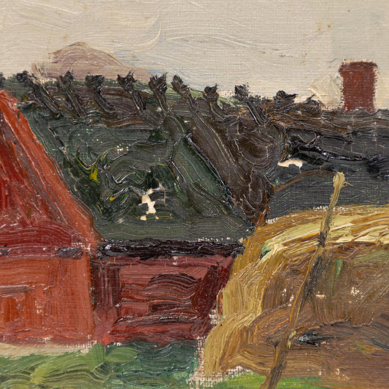 Oil on panel, farm motif, signed, dated 1935, dimensions with frame 56 x 45 cm.