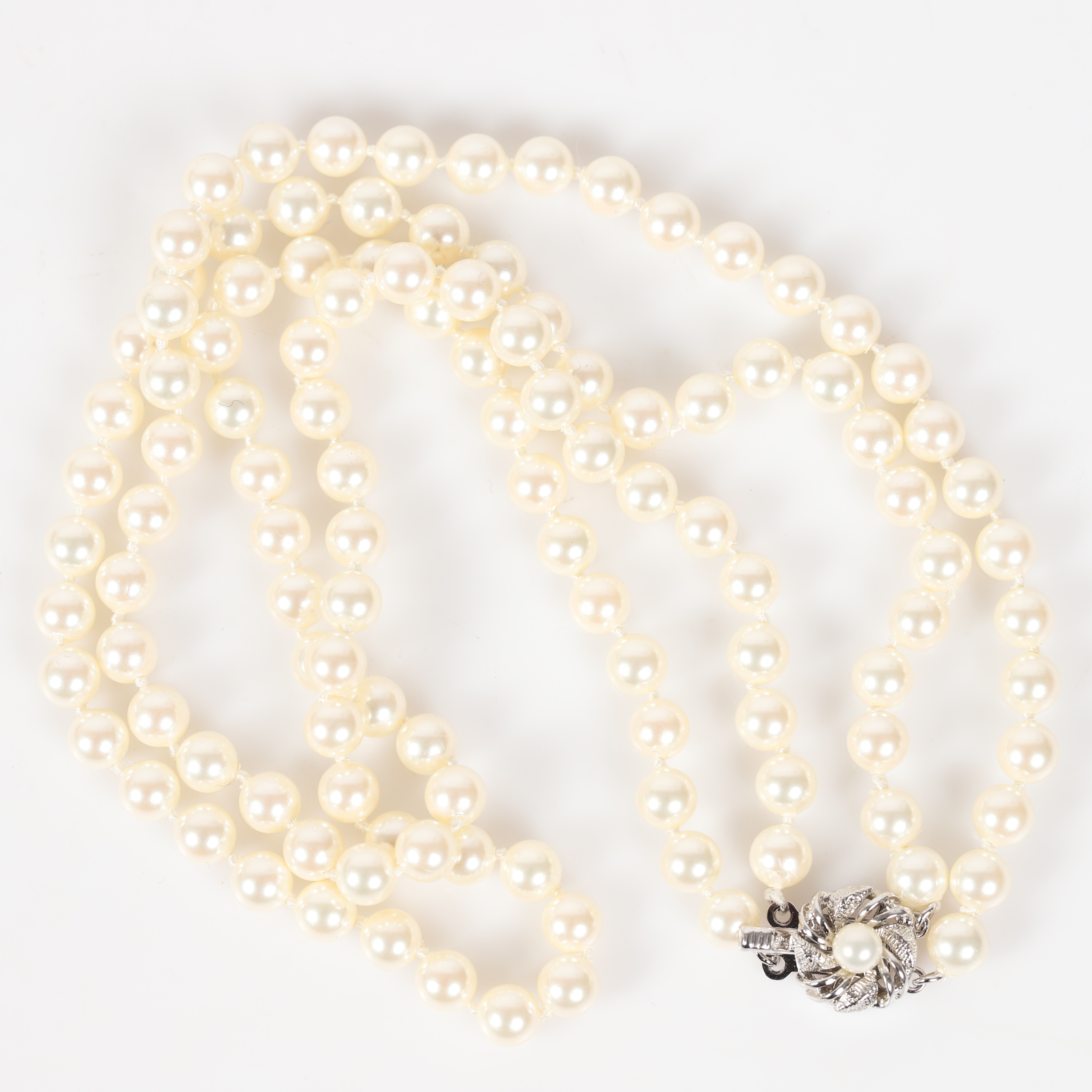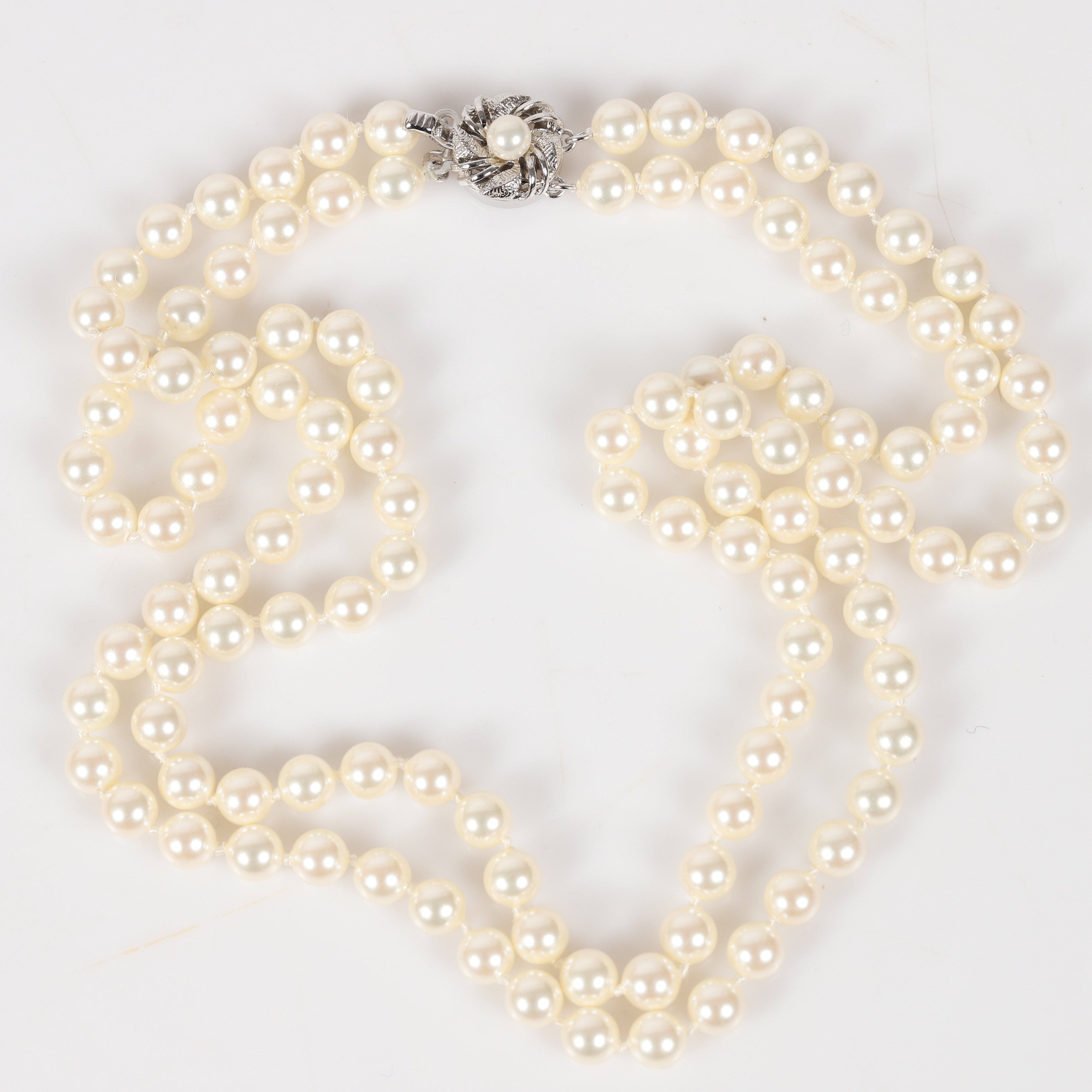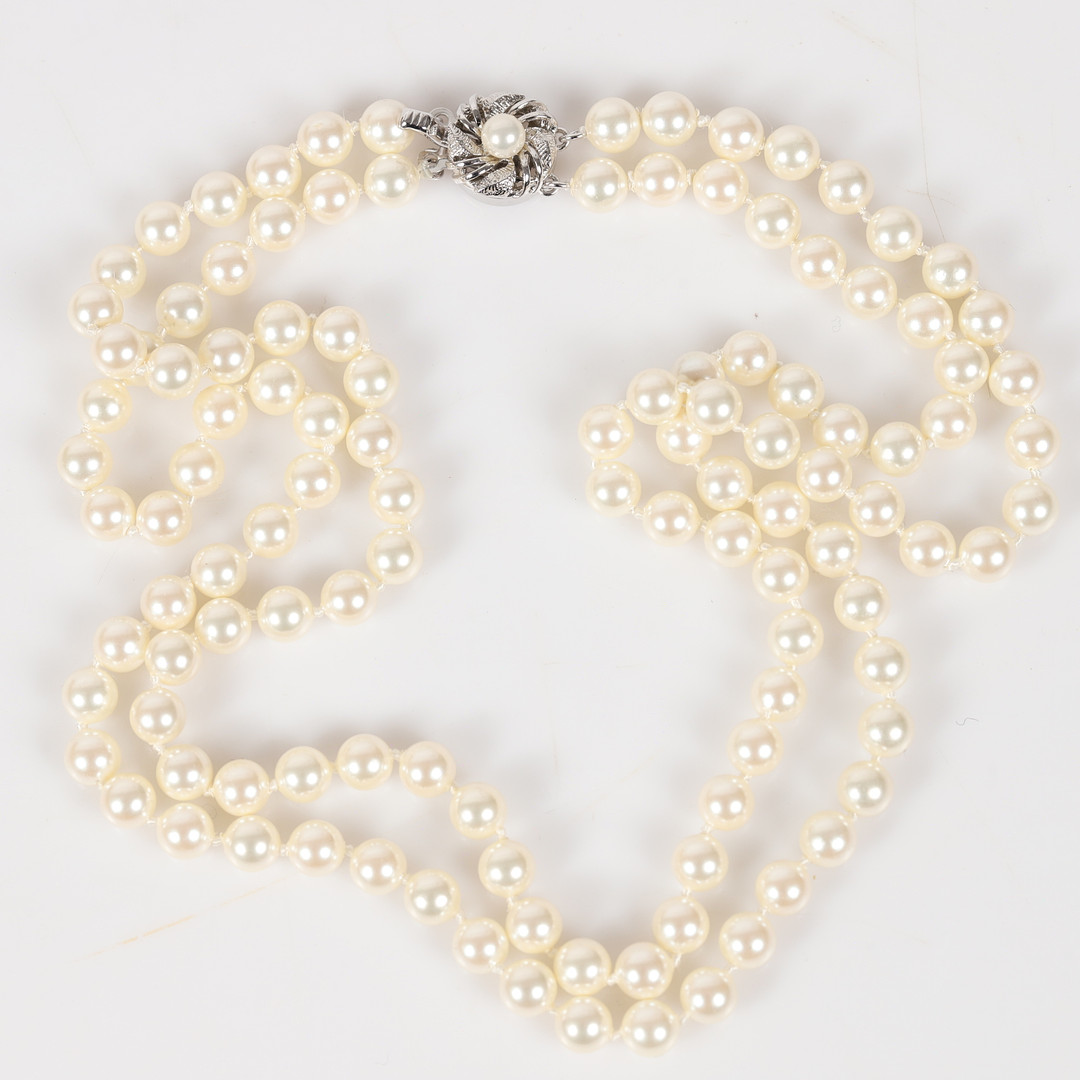 4996616. NECKLACE, 2-row, seashell pearls with silver clasp.