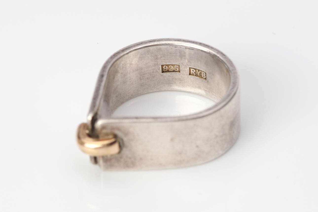 Silver ring with gold detail, j size. approx. 16,5 mm, total weight 7,5 g.