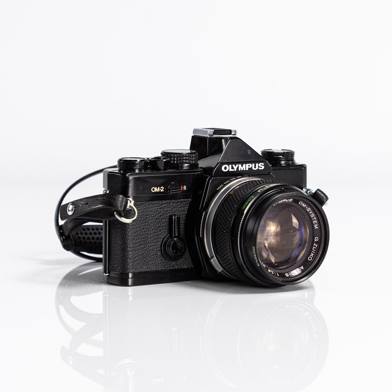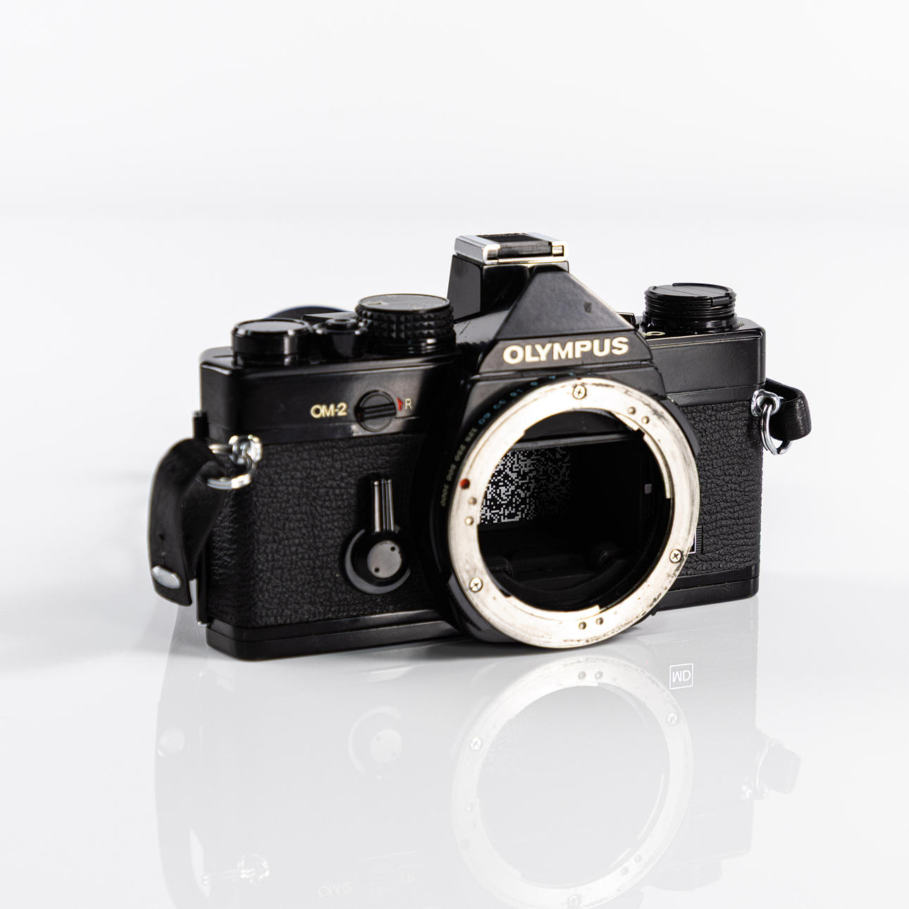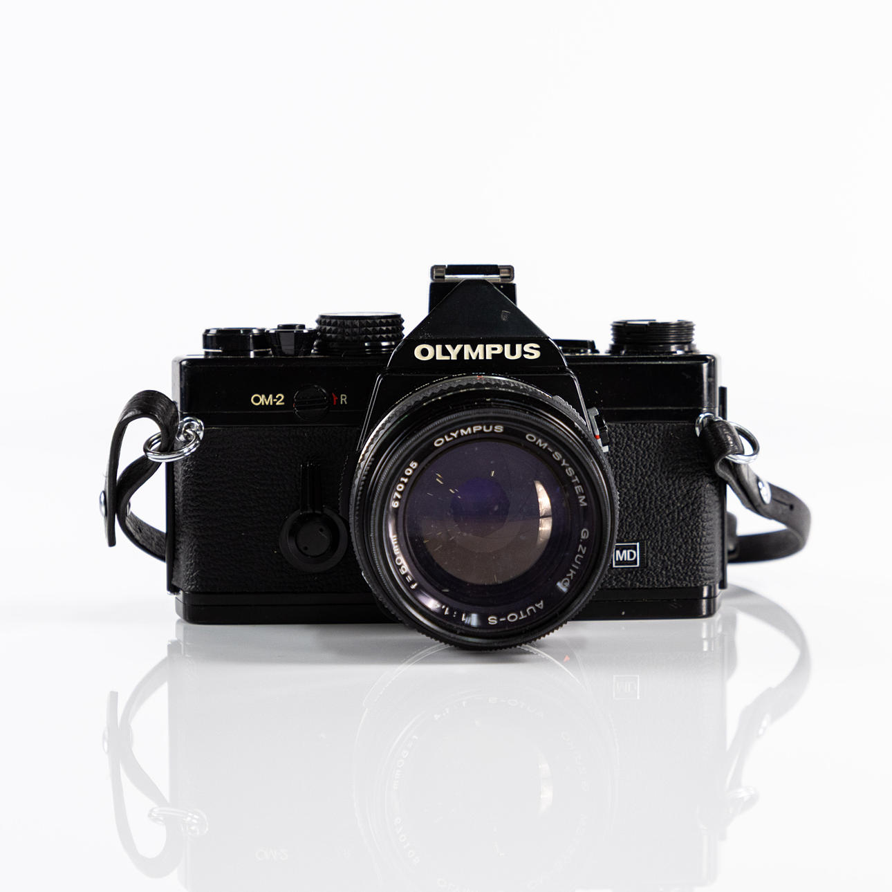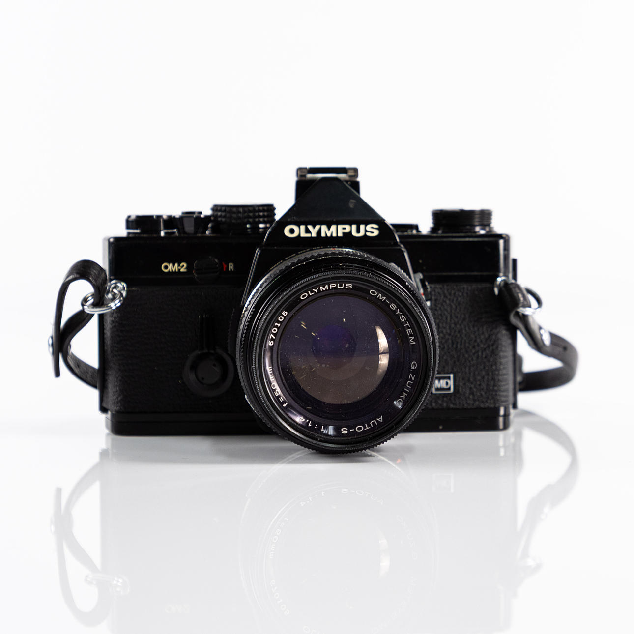 Olympus OM-2 Motor Drive, Optics; Olympus G-Zuiko Auto-S 50 mm/ 1:1.4, E.Zuiko Auto-T 100 mm/ 1:2.8, Vivitar 200 mm/ 1:3.5 (in carton), circa mid-1970s, Japan.