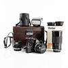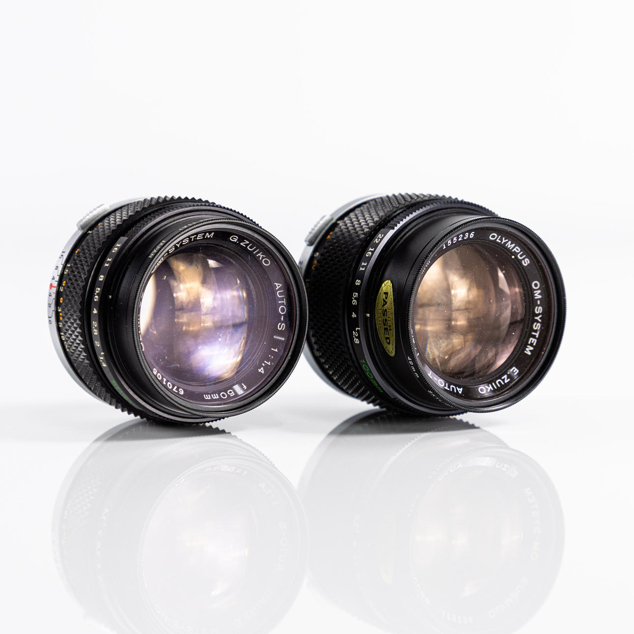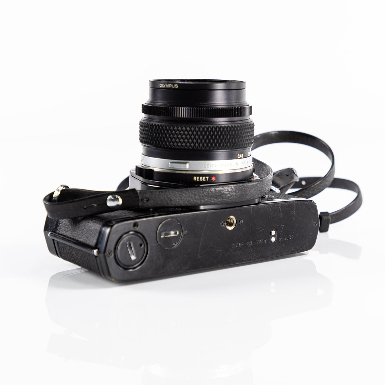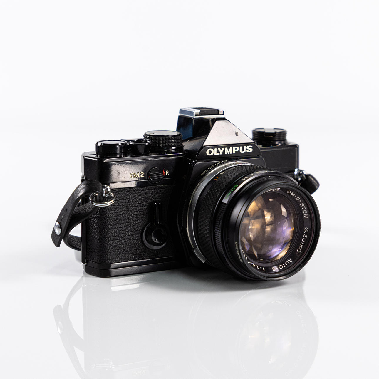 Olympus OM-2 Motor Drive, Optics; Olympus G-Zuiko Auto-S 50 mm/ 1:1.4, E.Zuiko Auto-T 100 mm/ 1:2.8, Vivitar 200 mm/ 1:3.5 (in carton), circa mid-1970s, Japan.