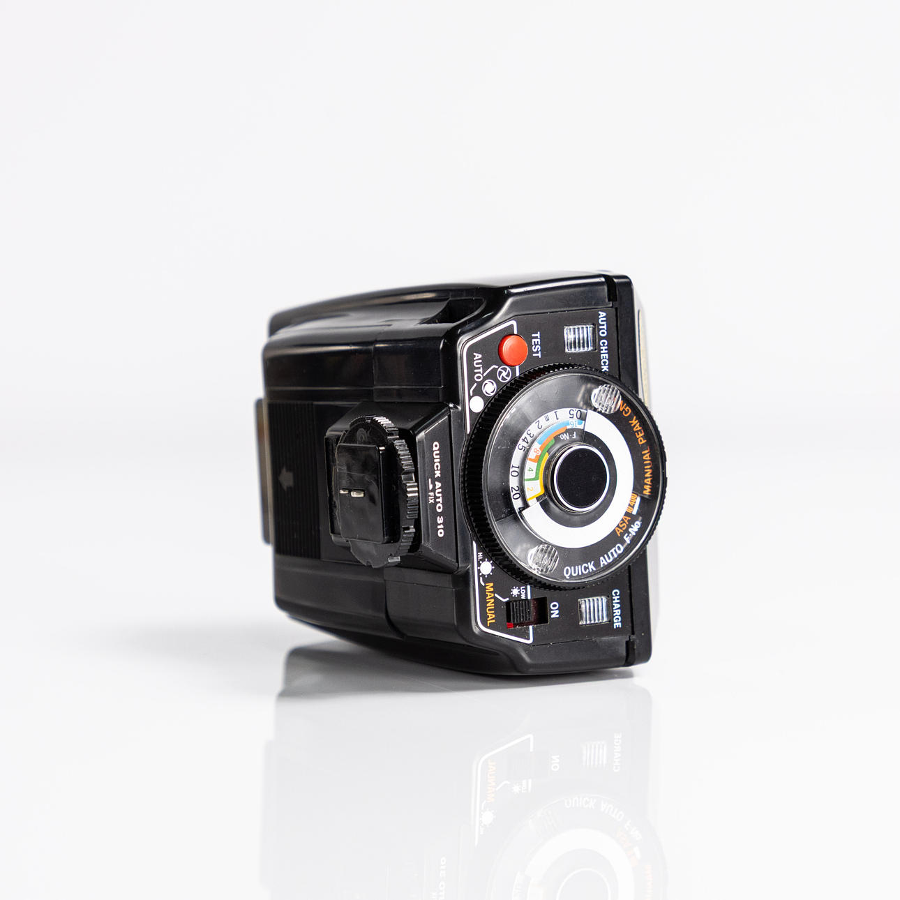 Accessories in the form of flash; Olympus Quick Auto 310, “TTL Auto Cord” in original packaging.