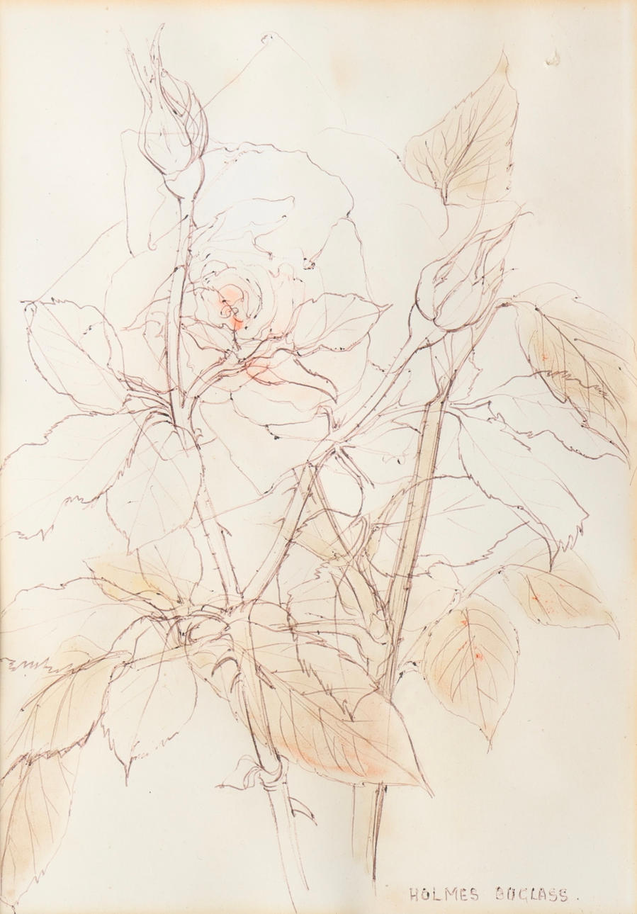 Comprising a study of a rose, signed, ink and watercolour, 18.5 x 13cm, and a rural landscape, 12 x 16cm, each in a glazed gilt frame, 30.5 x 34cm the largest. (2).