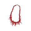 The necklace is made from red coral branches and can be closed with a metal screw cap.