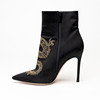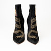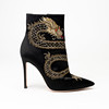 Black silk with gold embroidered dragon, with stiletto heel height approx. 10 cm. Tagged “Gianvito Rossi MILANO”. Enl marking size 37.