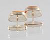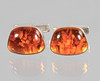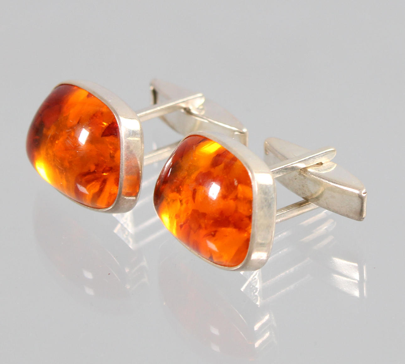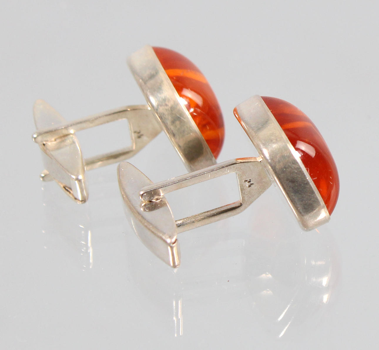 Cufflinks are crafted and hallmarked in 835 silver, plus the brand from Fischland-Schmuck, Riebnitz-Damgarten, Germany, set with polished amber cabochons, size 20 x 15 mm, weight 11.3 grams.