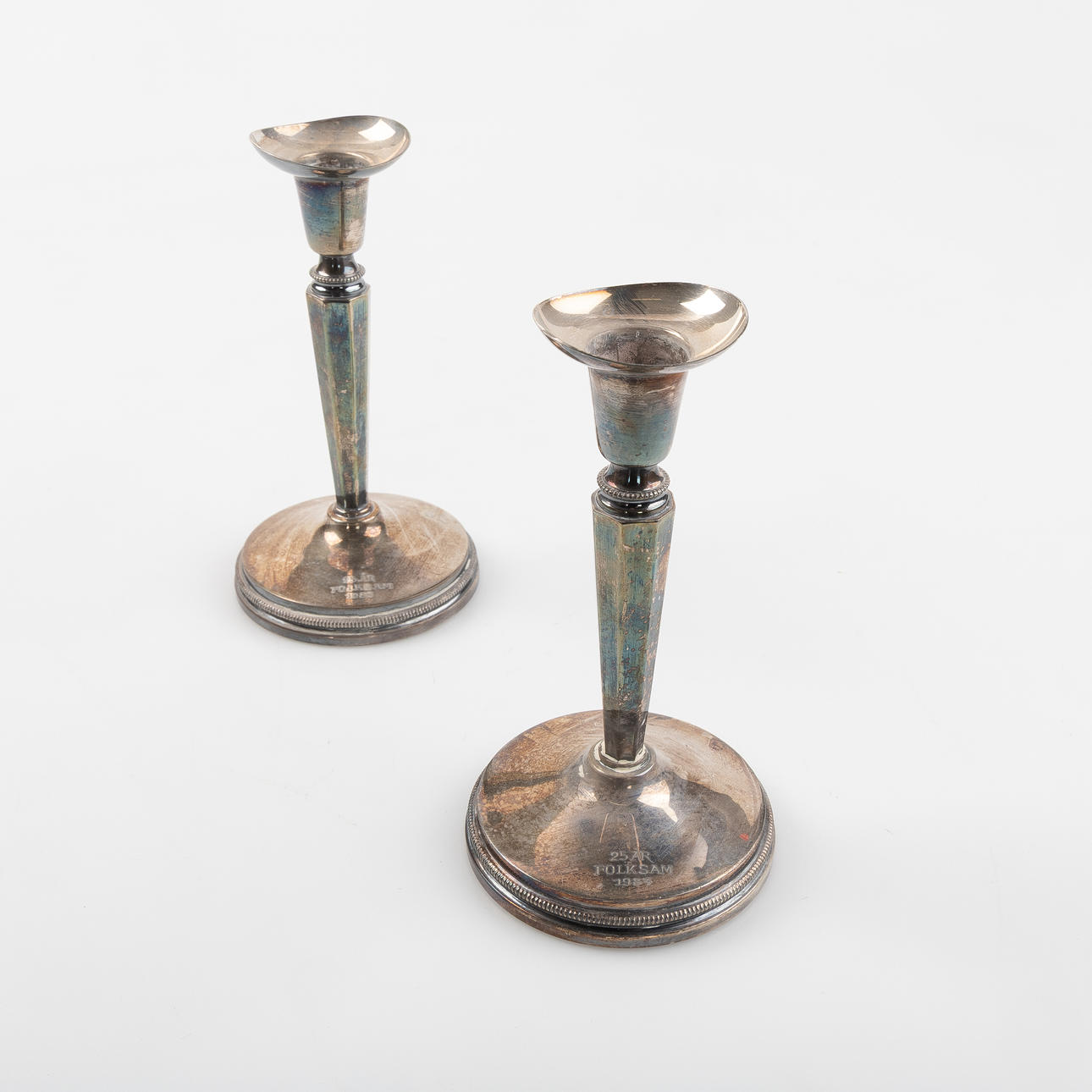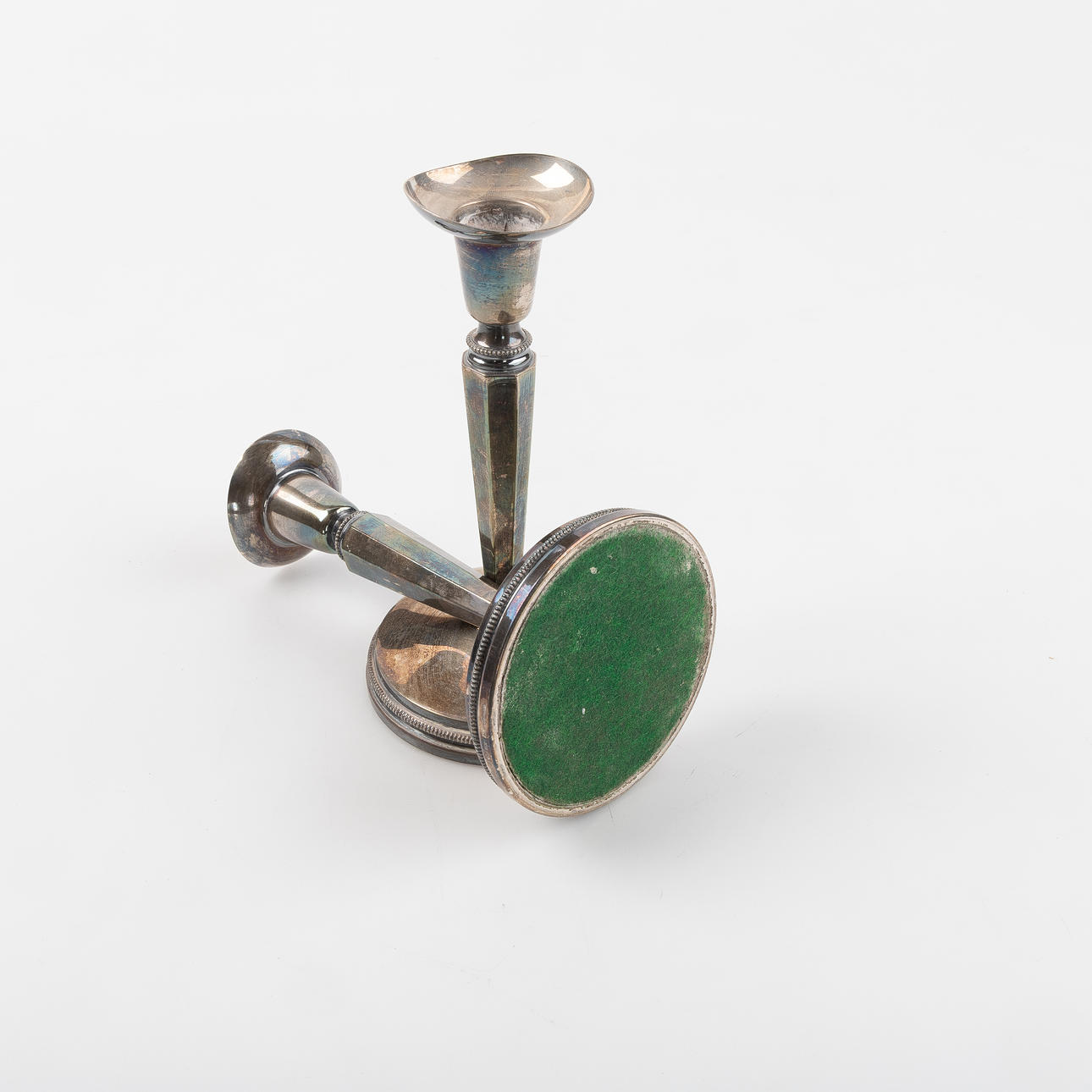 Engraving, candle remnants, one with slightly oblique cuff. Usage and age-related wear.
