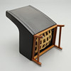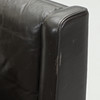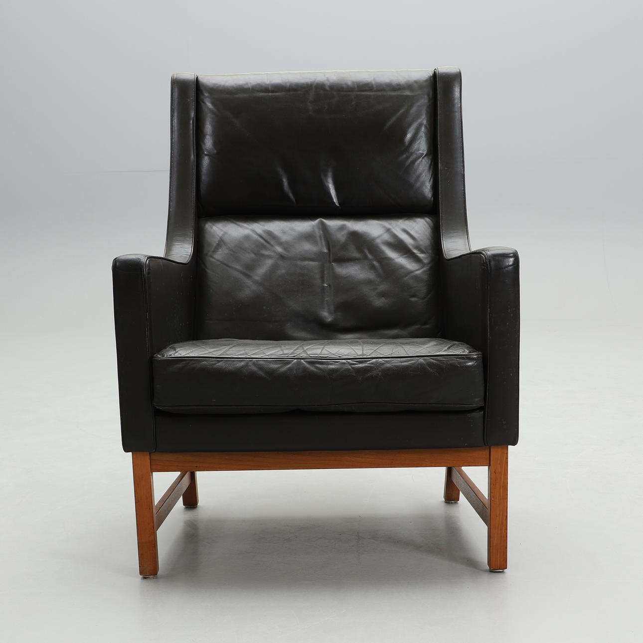 Dressed in black leather. Loose seat space. Seat height 42 cm. Back height 98 cm.