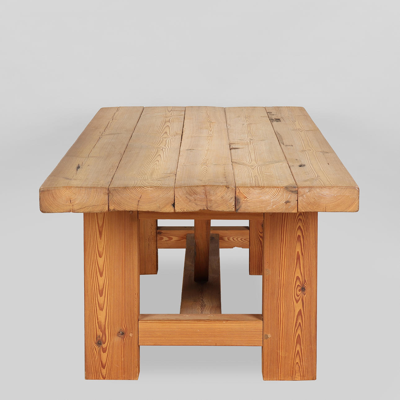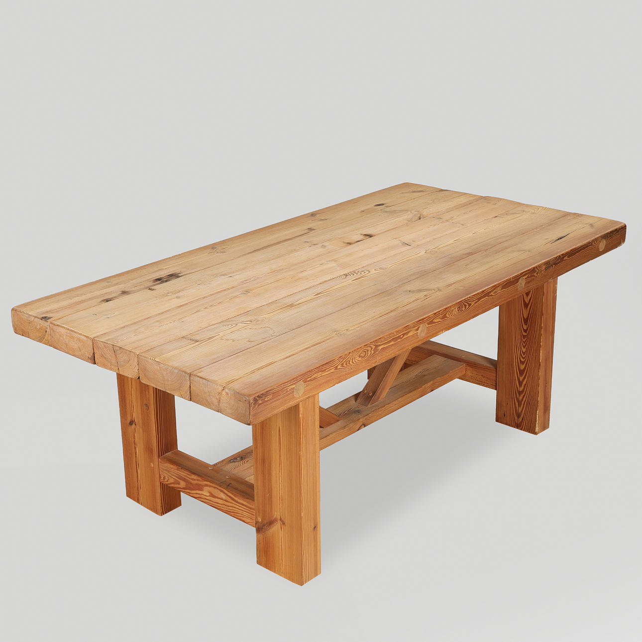 Table made of solid pine. Designed by Jens Lyngsøe and presumably executed at Anton Dam from demolition timbers from old buildings.