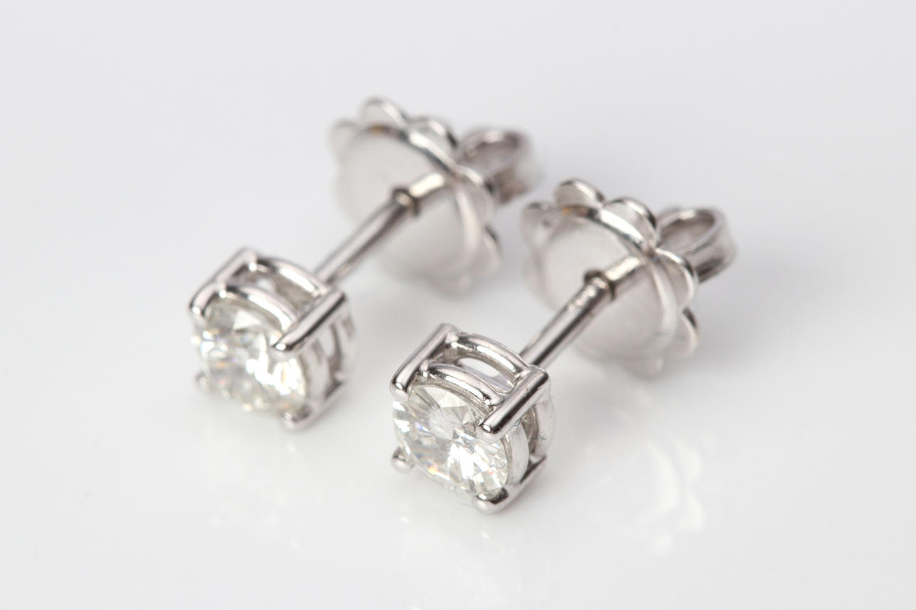 Earrings in white gold 18k with brilliant cut diamonds, total approx 0,55 ct, TW, VS, total weight 1,8 g.