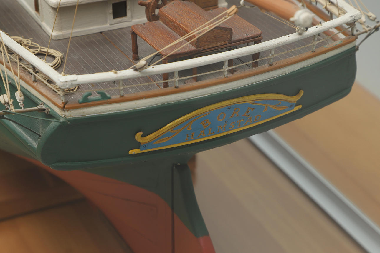 4997989. KARL ALBIN STRÖMBERG. Ship model, “Bore, Halmstad”, signed, dated 1936.