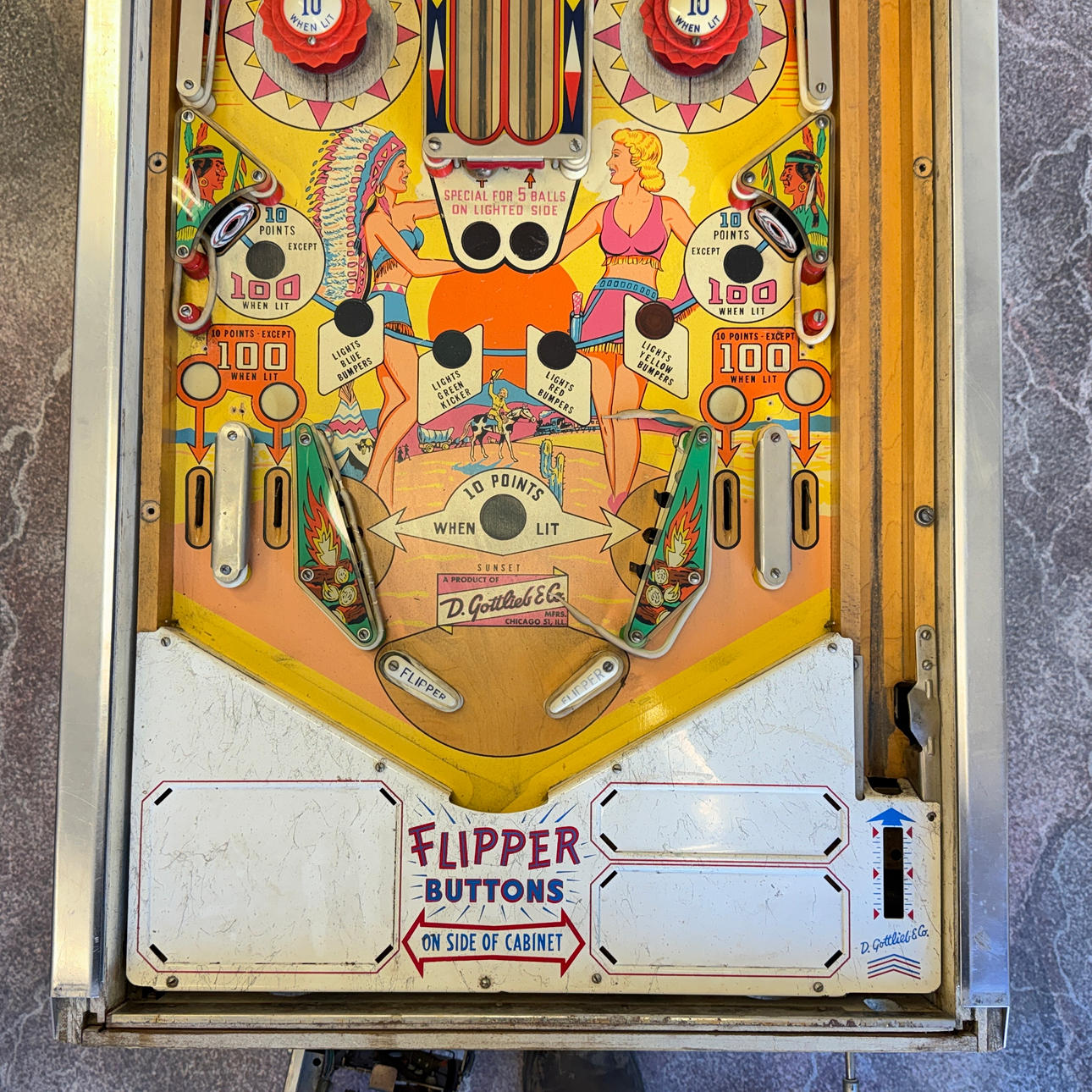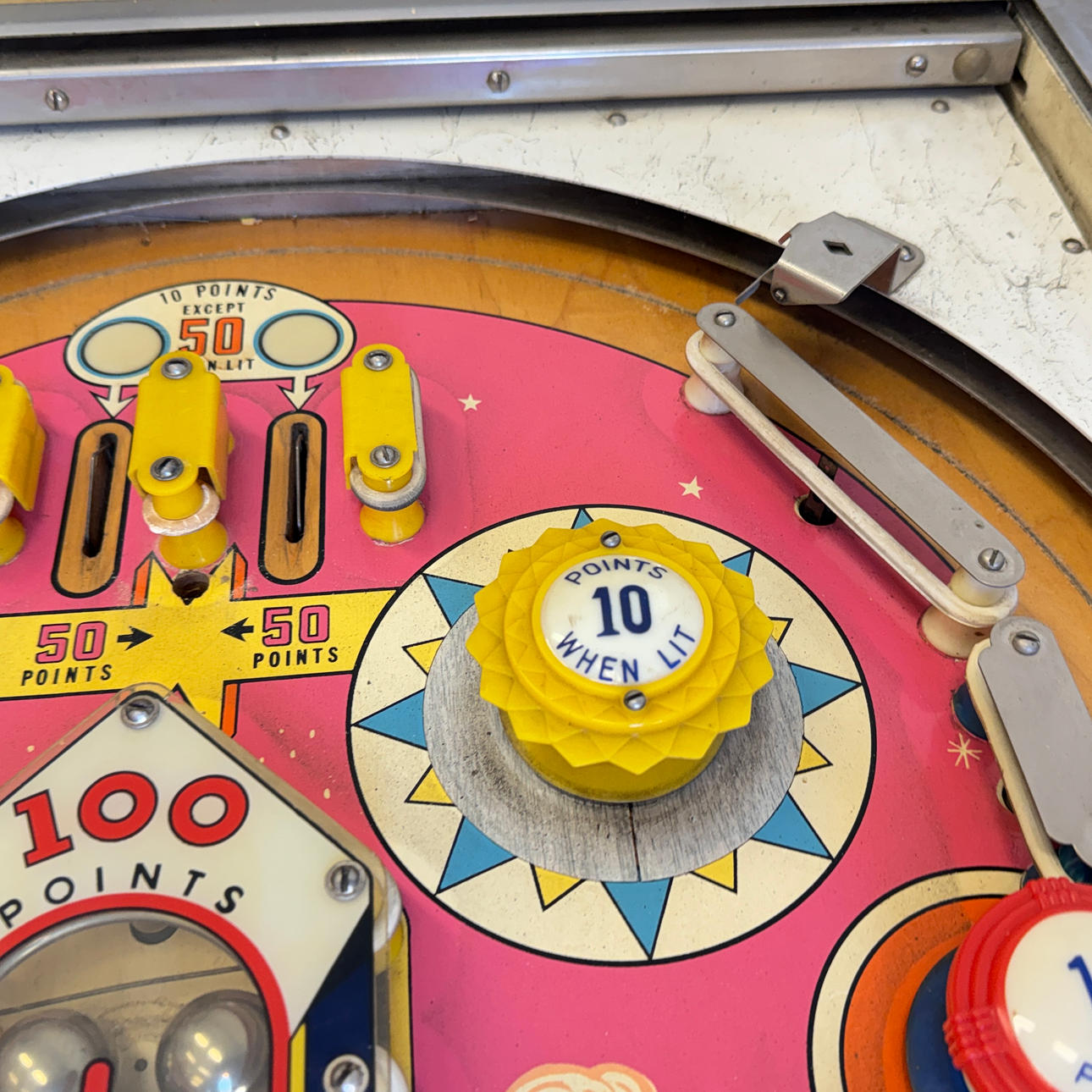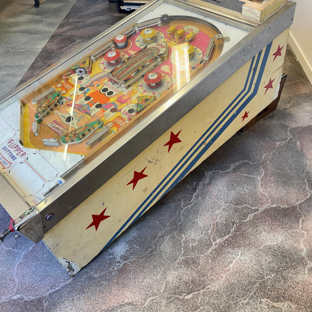 Rear glass very good condition. Playing field and cabinet light wear, ok for its age. The game is otherwise in good shape for its age.