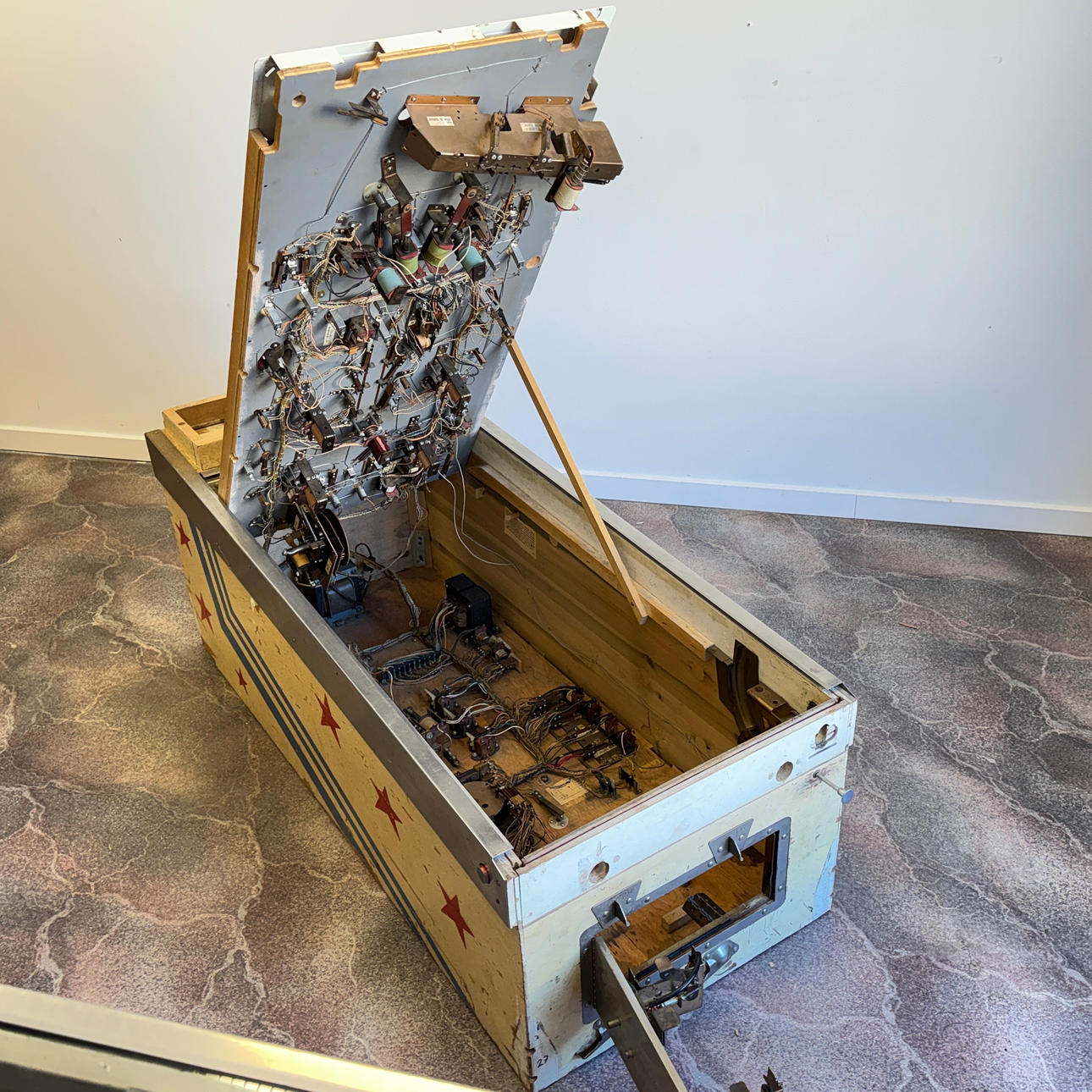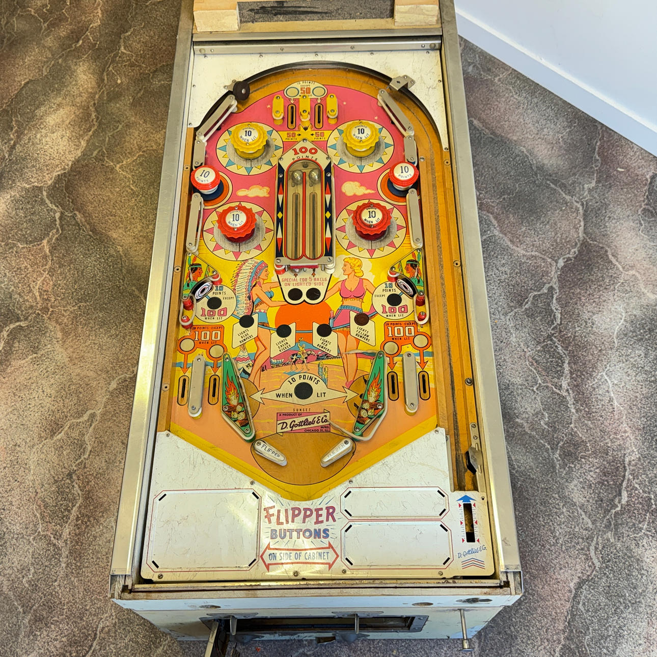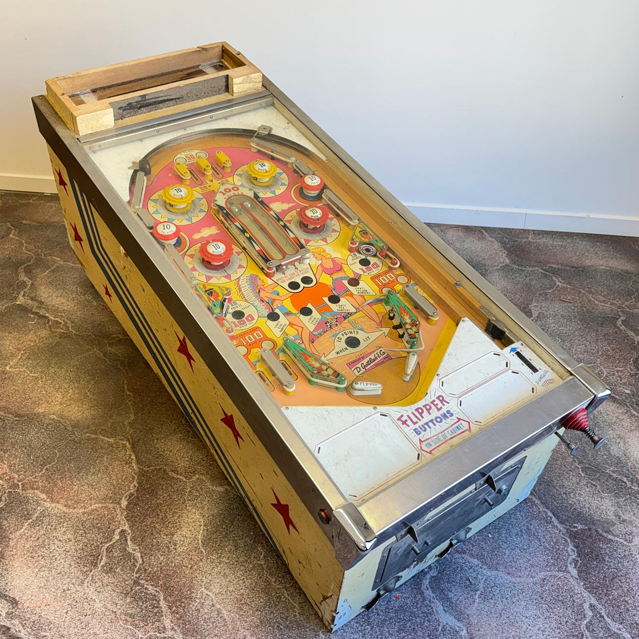 Rear glass very good condition. Playing field and cabinet light wear, ok for its age. The game is otherwise in good shape for its age.