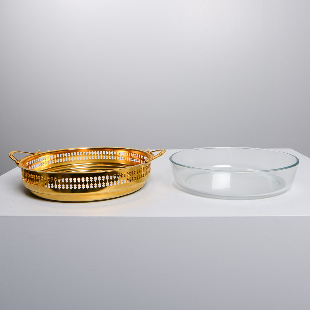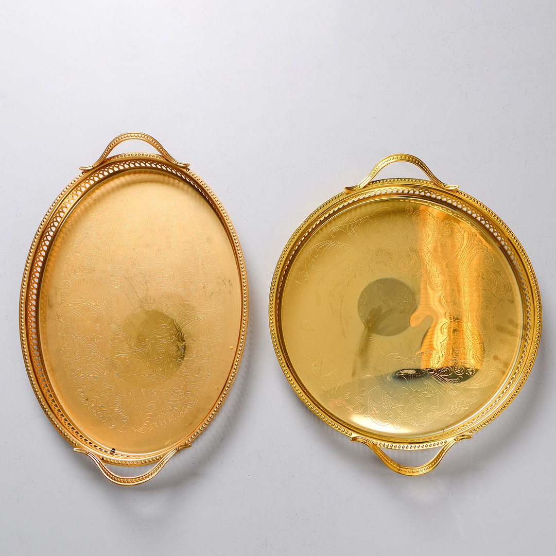 4998100. SERVING TRAYS & SERVING TRAYS, yellow metal, 3 pieces.