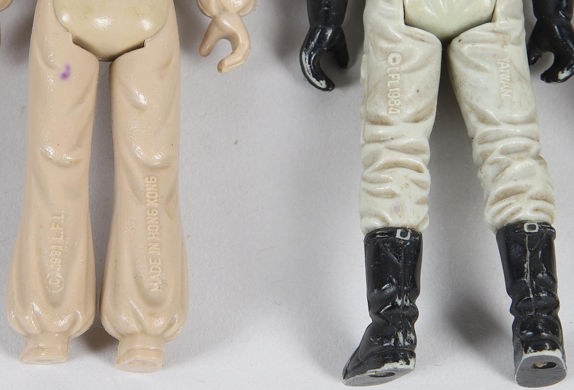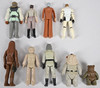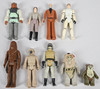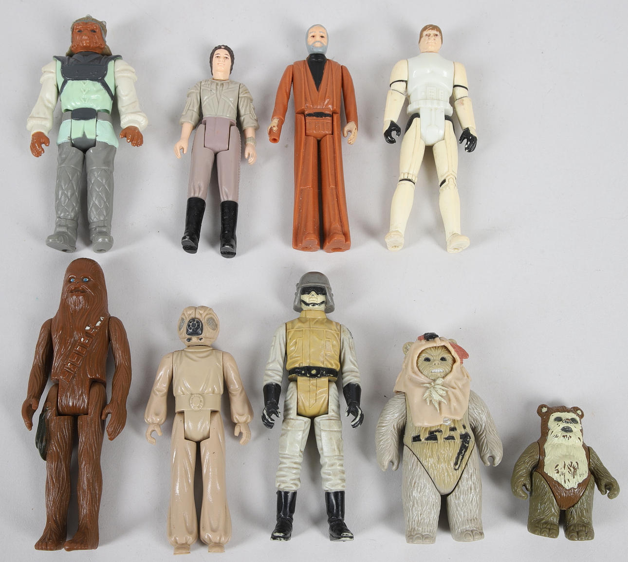 Figurines: Luke Skywalker “Stormtrooper in digsuise”, 1984/Chief Chirpa Ewok/Wicket W Warrick Ewok/Chewbacca 1977/Princess Leia in “Endor Combat outfit” 1984/Obi Wan Kenobi 1977/bounty hunter 4-LOM 1981/Nikto/AT - ST Driver, length approx 5-11 cm.