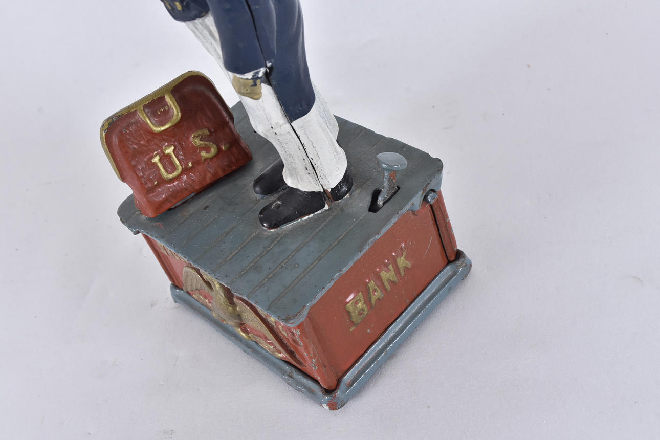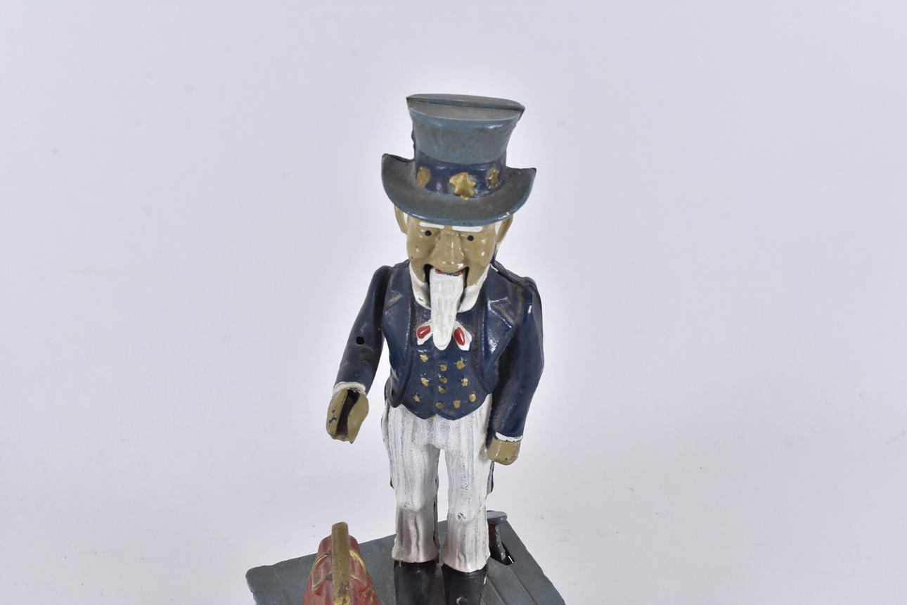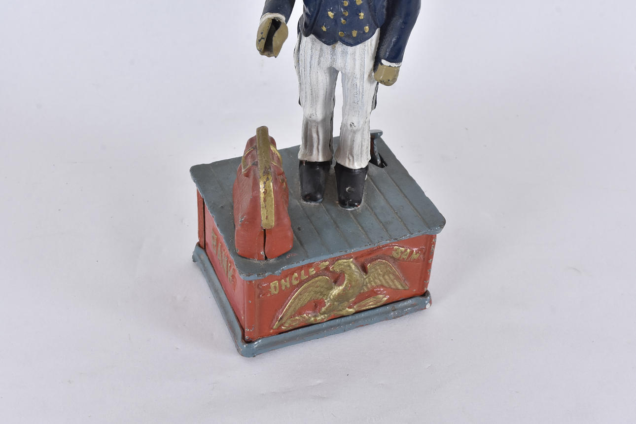 MONEY BOX, painted metal, Uncle Sam.