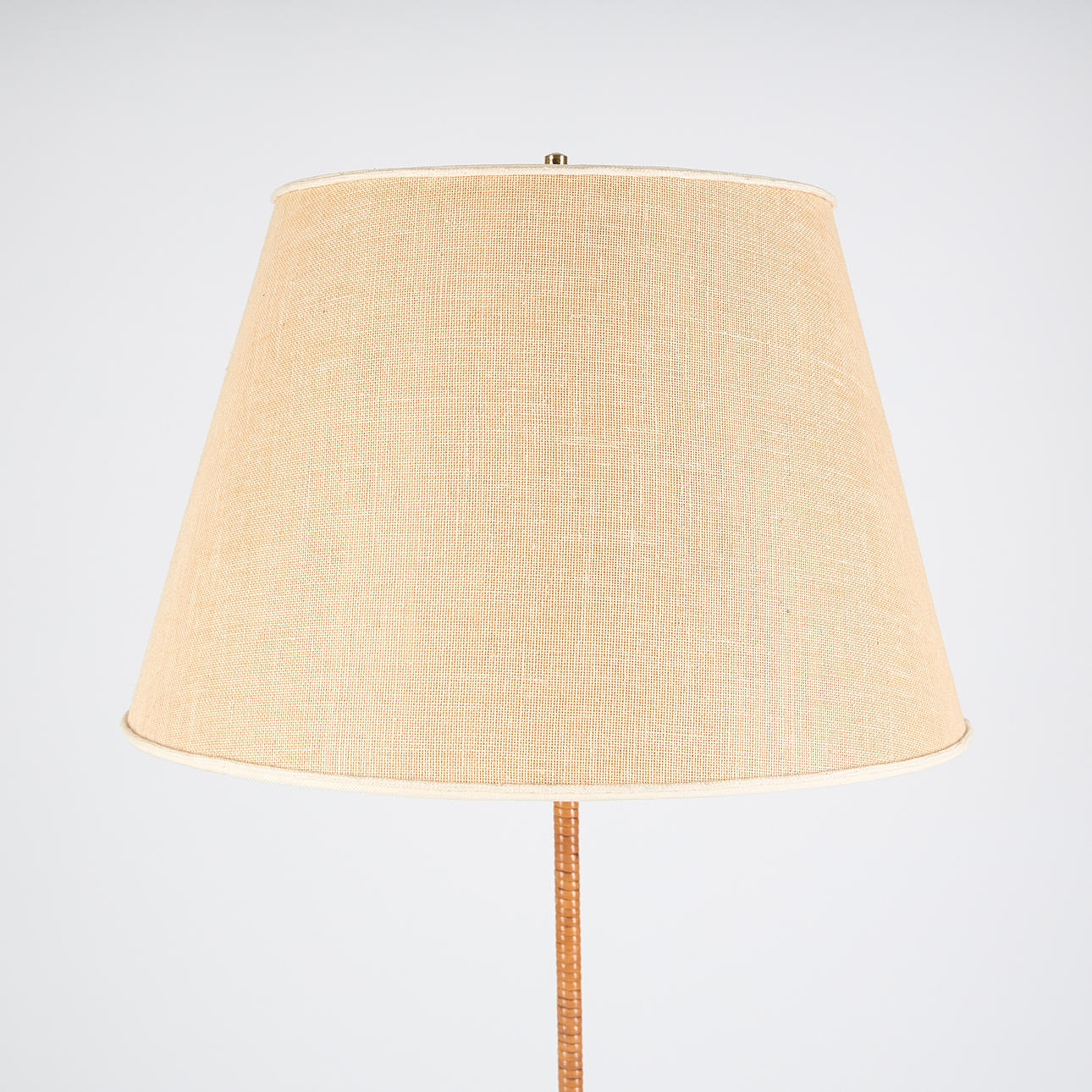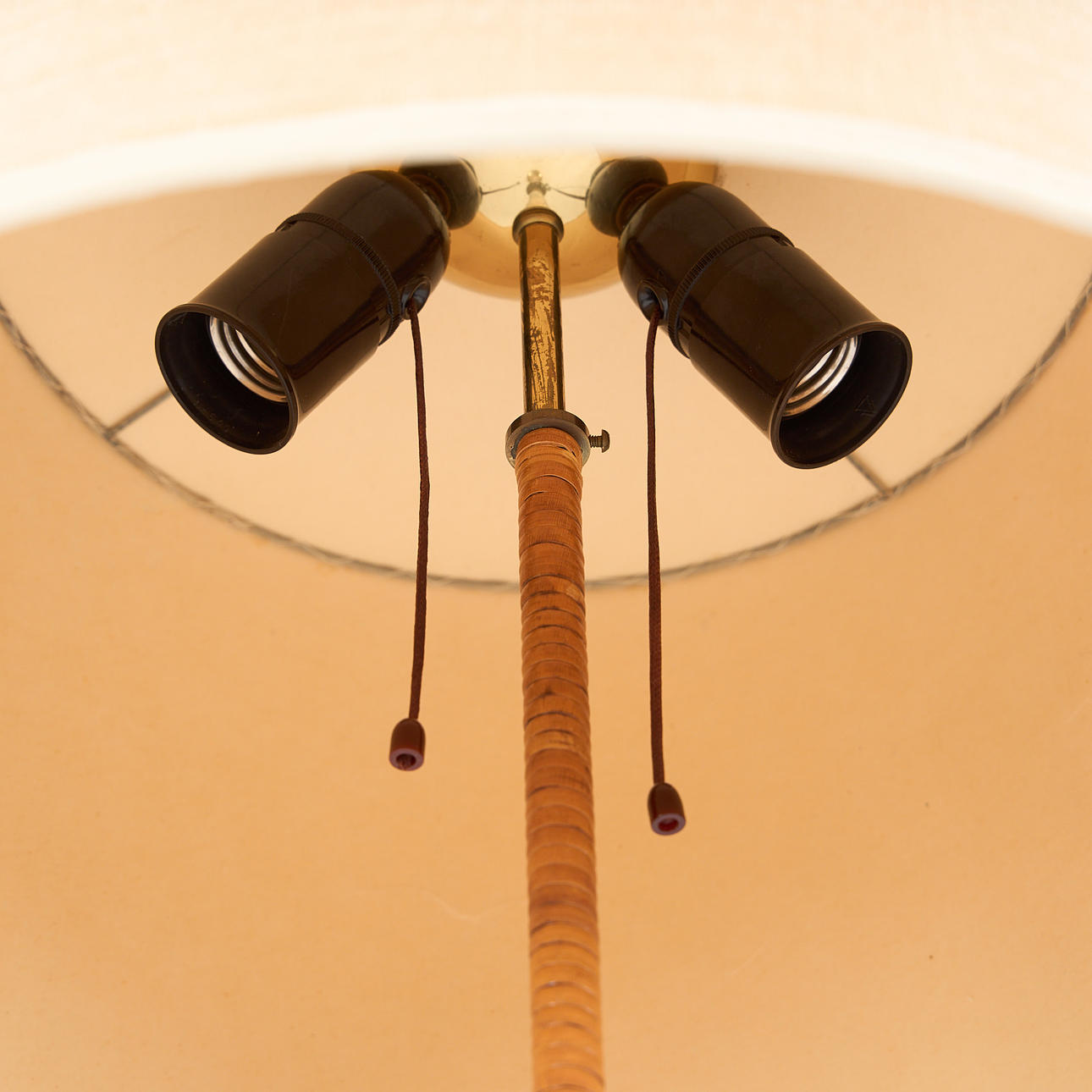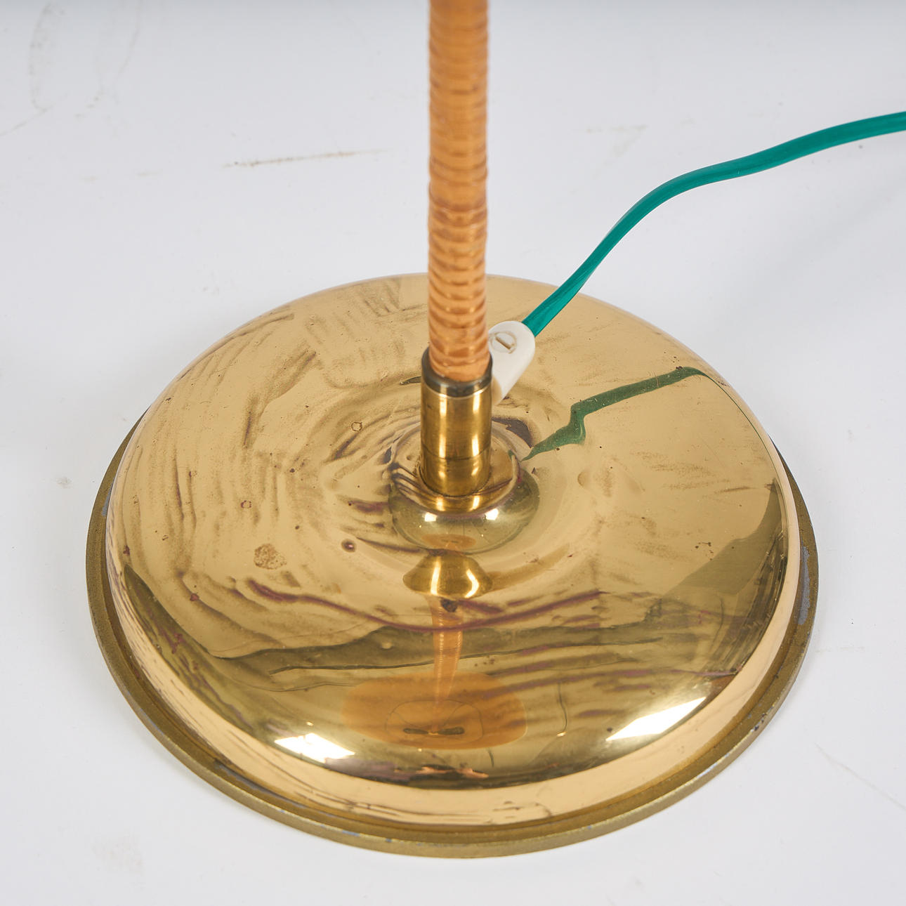 Shaft with twisted rattan, footplate in polished brass. Total height 142 cm. The diameter of the screen 46.5 cm.