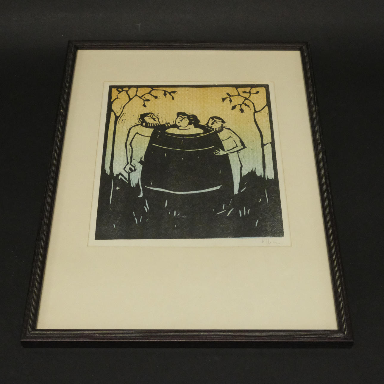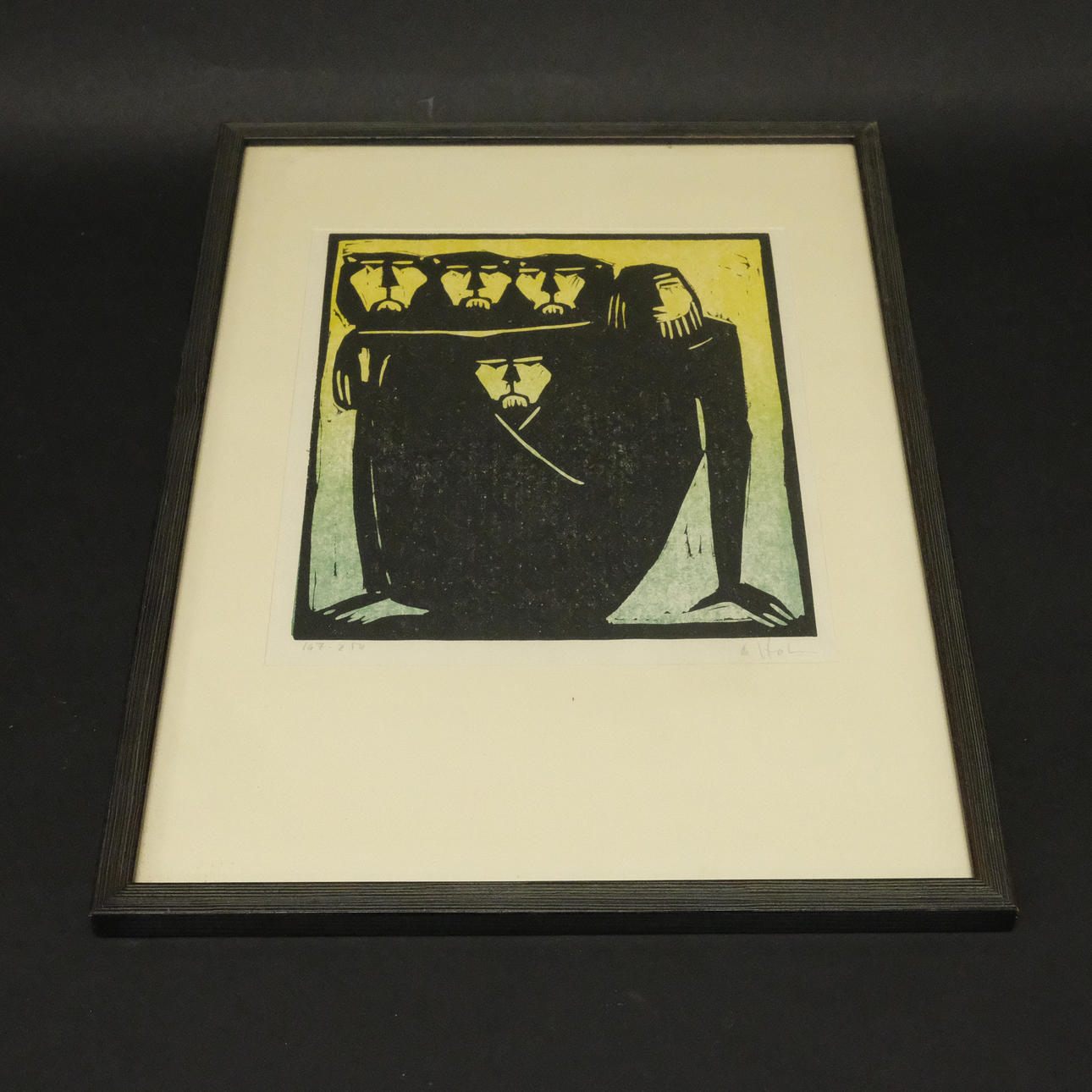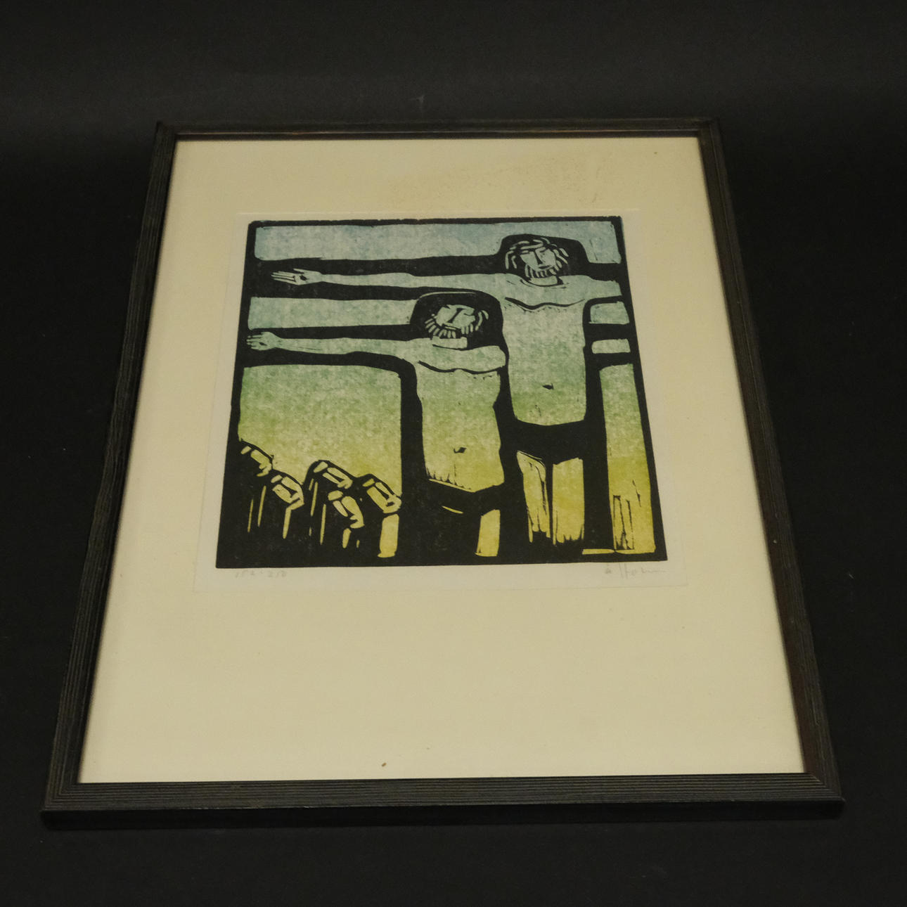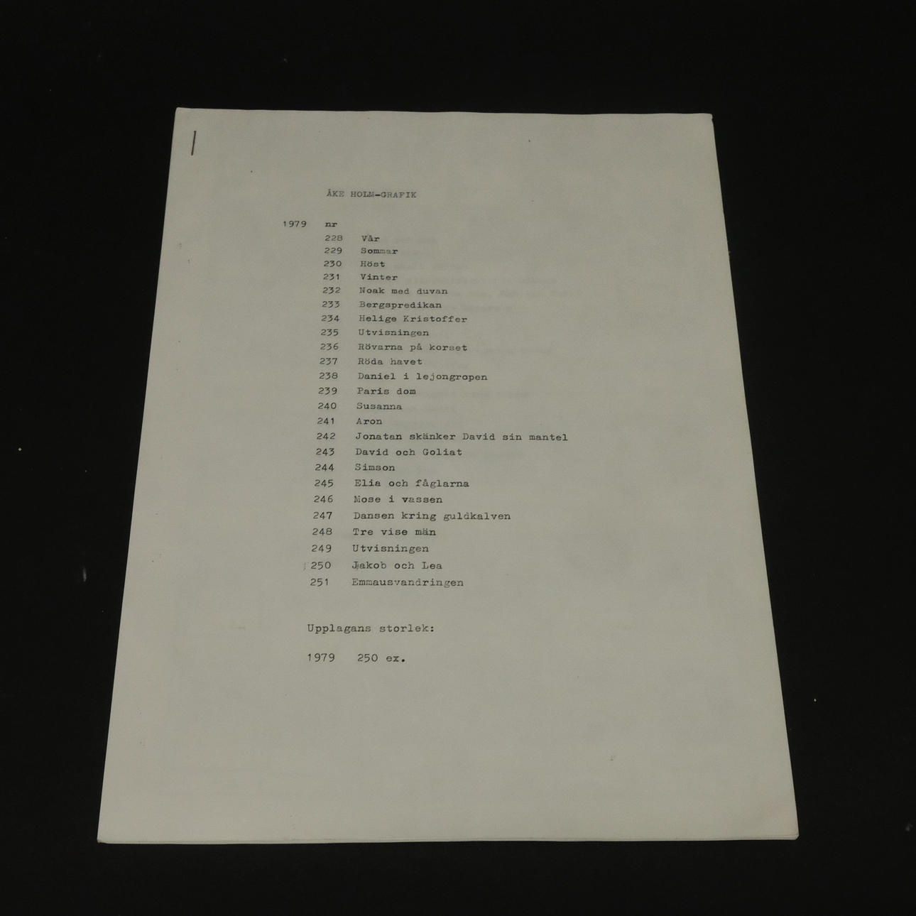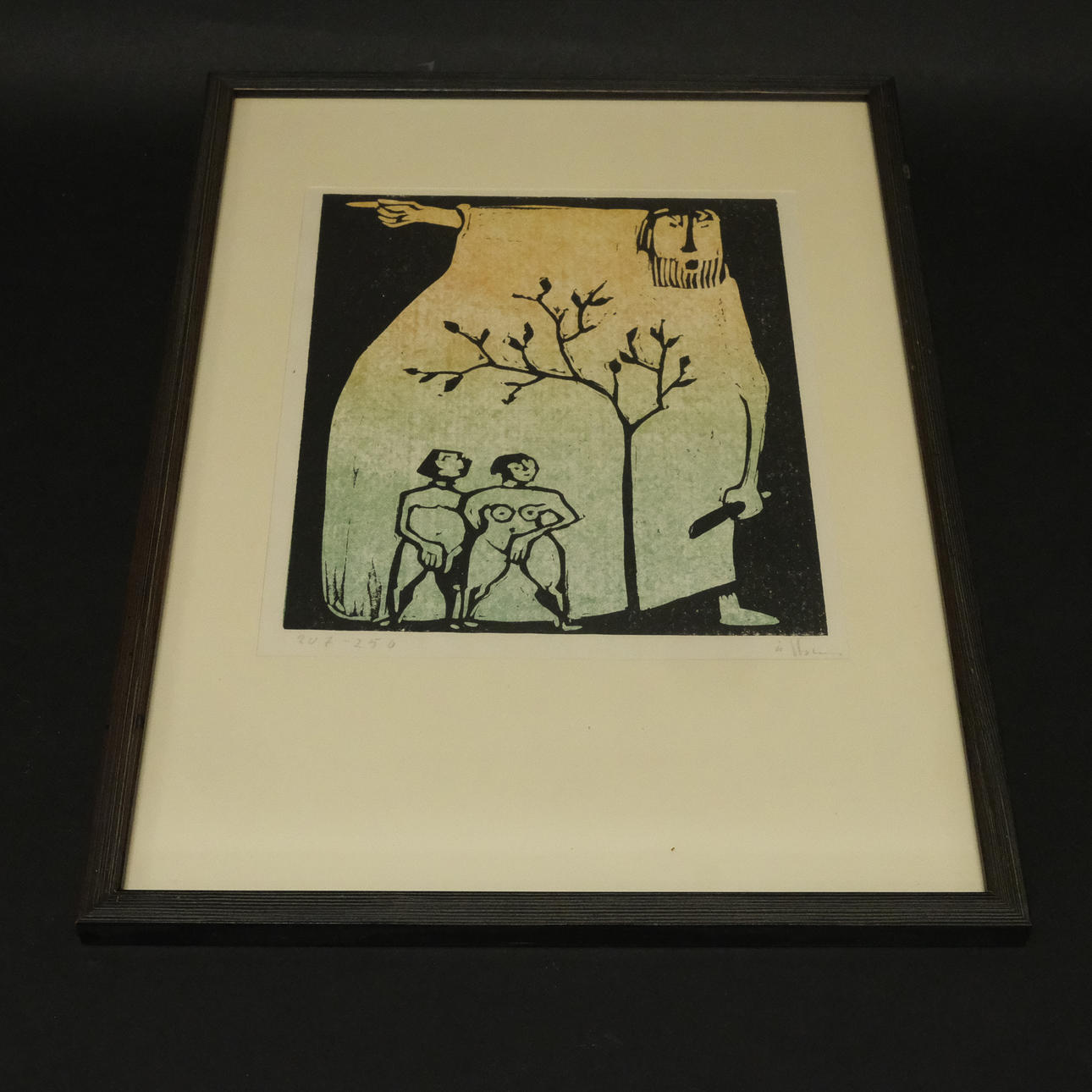 Reproduction of watercolor "Kain och Abel" no. 57/250, dimensions 17.5 x 22 cm, frame dimensions 24 x 33 cm, accompanying booklet with 13 years of Åke Holm graphics.