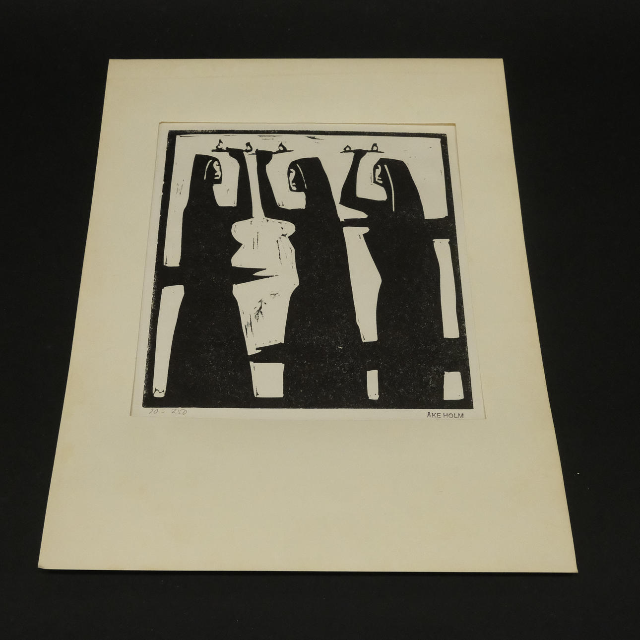 16 linocuts, edition of 250, 14 are signed, dimensions approx. 18 x 21 cm, frame dimensions 26 x 36 cm, 2 are name-stamped by Höganäs museum after Åke Holm's passing with the estate's permission, unframed.