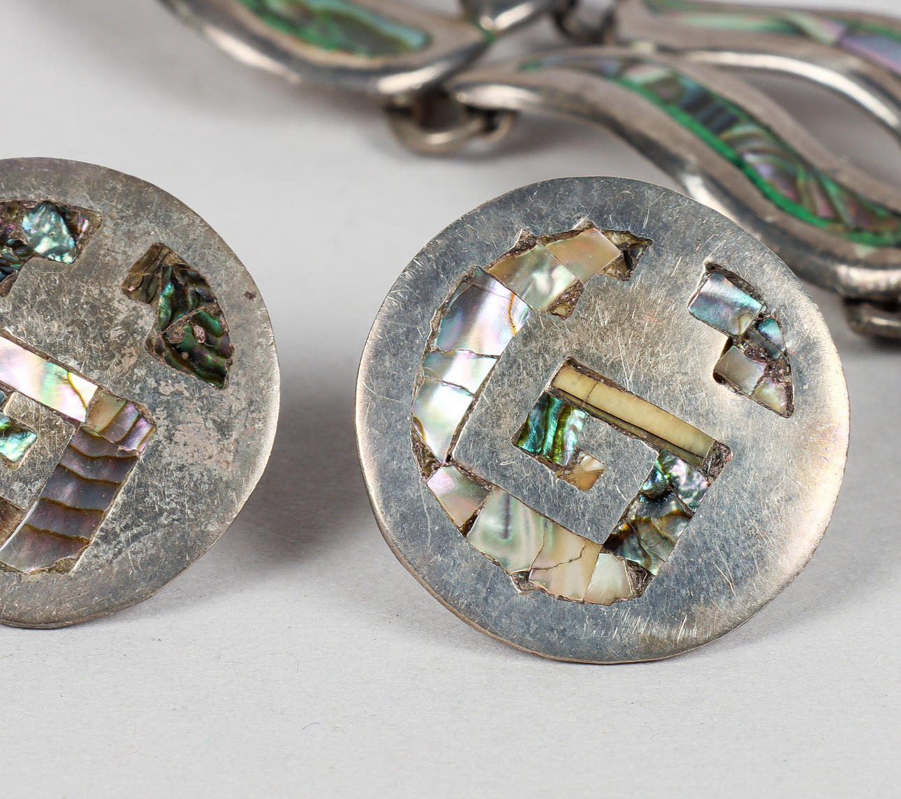 A SILVER JEWELLERY with abalone shell inlay, Mexico.
